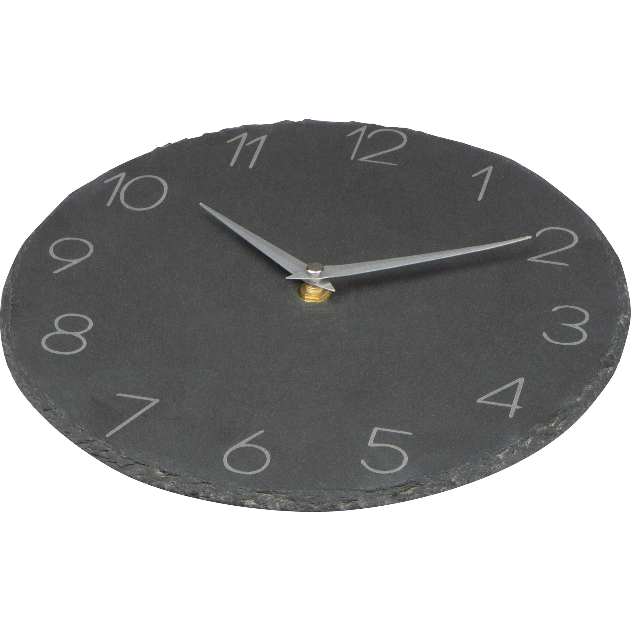 Элегантные настенные часы из сланца (натурального камня) с серебряными стрелками. Эти часы будут привлекать внимание в каждой комнате! Ваш логотип будет выгравирован на часах.