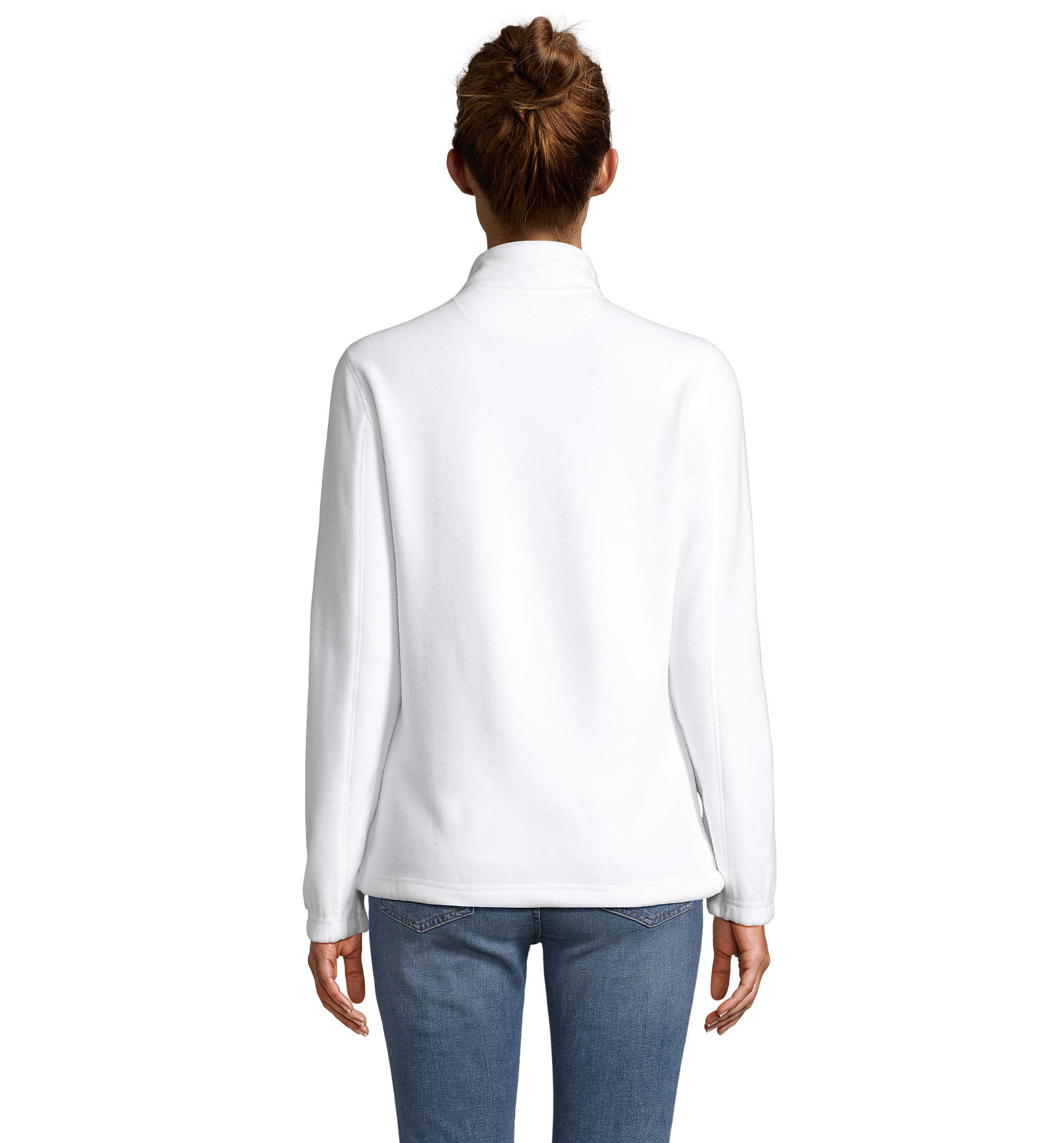 SOL'S NORTH women's fleece sweater in anti-pilling material, reinforced neck seam, high-lined collar, 2 zipped pockets, elasticated cuffs, crescent at the back, elastic drawstring at the hem. Fabric detail: 300g/m² fleece 100% polyester. OEKO-TEX. Only sold with print