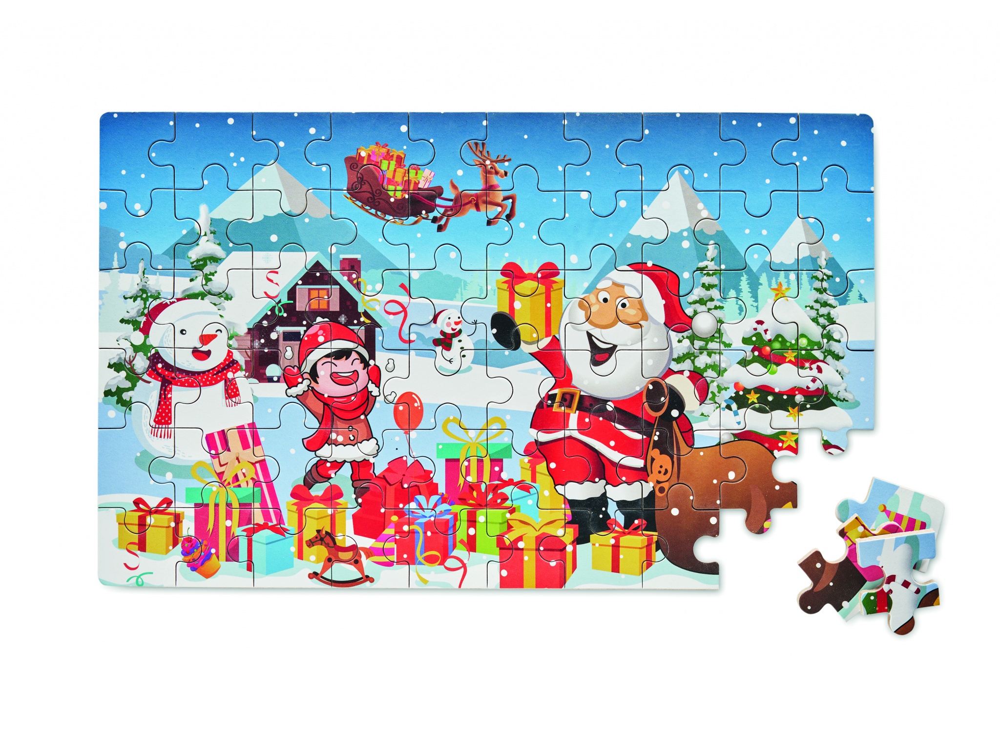 Рождественский паззл в жестяной коробке. 60 деталей.