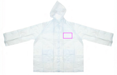 Куртка-дождевик из ПВХ (один размер XL) прозрачная матовая с капюшоном, двумя передними карманами и кнопками. Мы напечатаем ваш логотип на груди (сторона сердца).