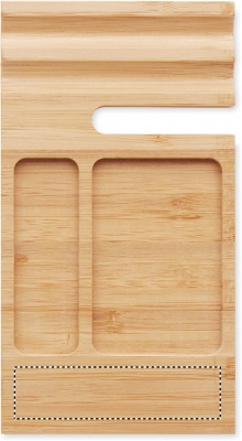 Бамбуковая настольная подставка для смартфона со скрепками и набором стикеров.