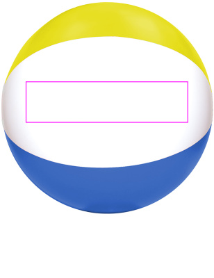 Многоцветный пляжный мяч с шестью разноцветными сегментами. Длина сегмента около 40 см. Мы напечатаем ваш логотип на белом сегменте.