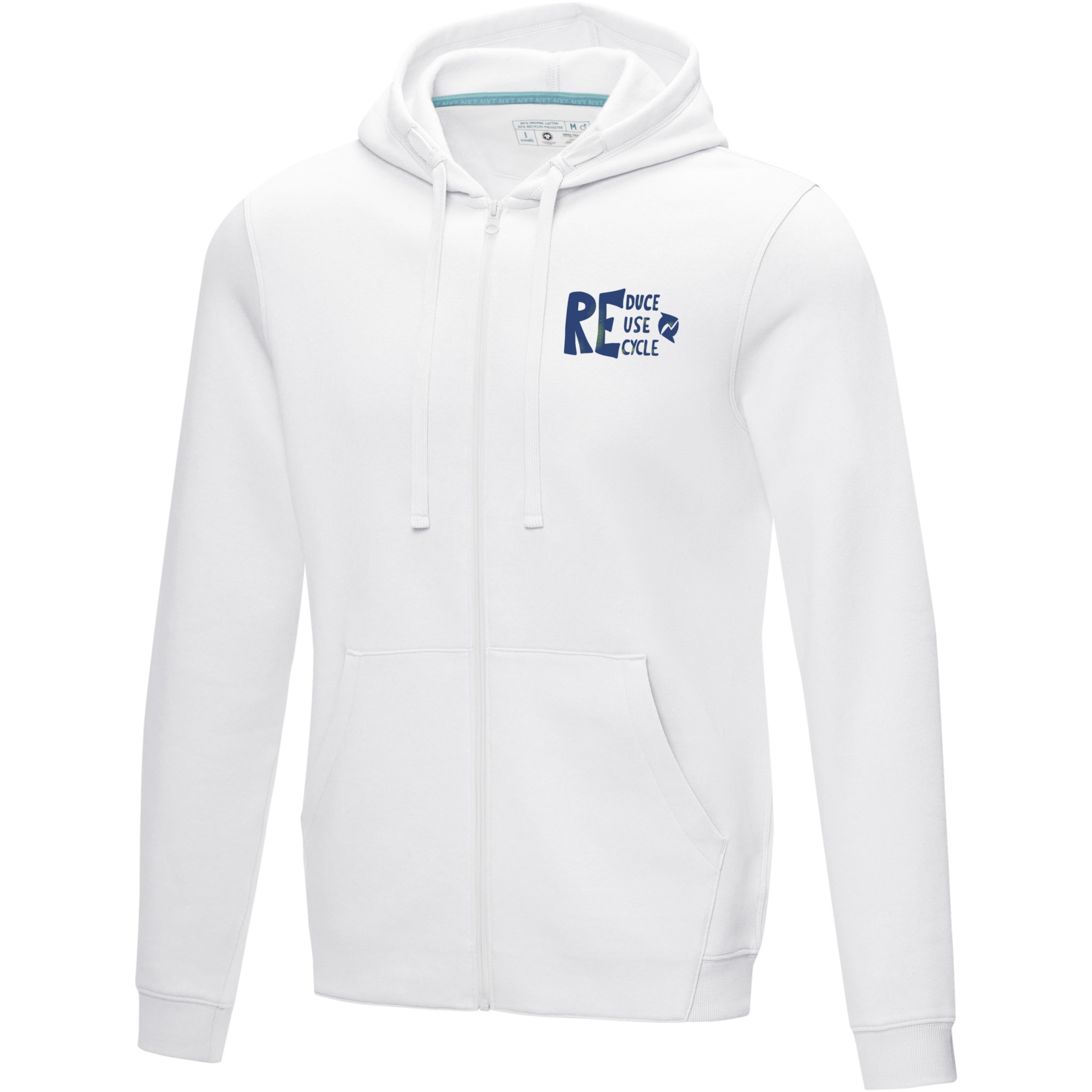 The Ruby men's organic recycled full zip hoodie – this hoodie showcases a blend of eco-conscious features that redefine modern fashion. With a soft brushed interior, it ensures a cozy feel. Made from a 280 g/m² blend of organic cotton and recycled polyester.