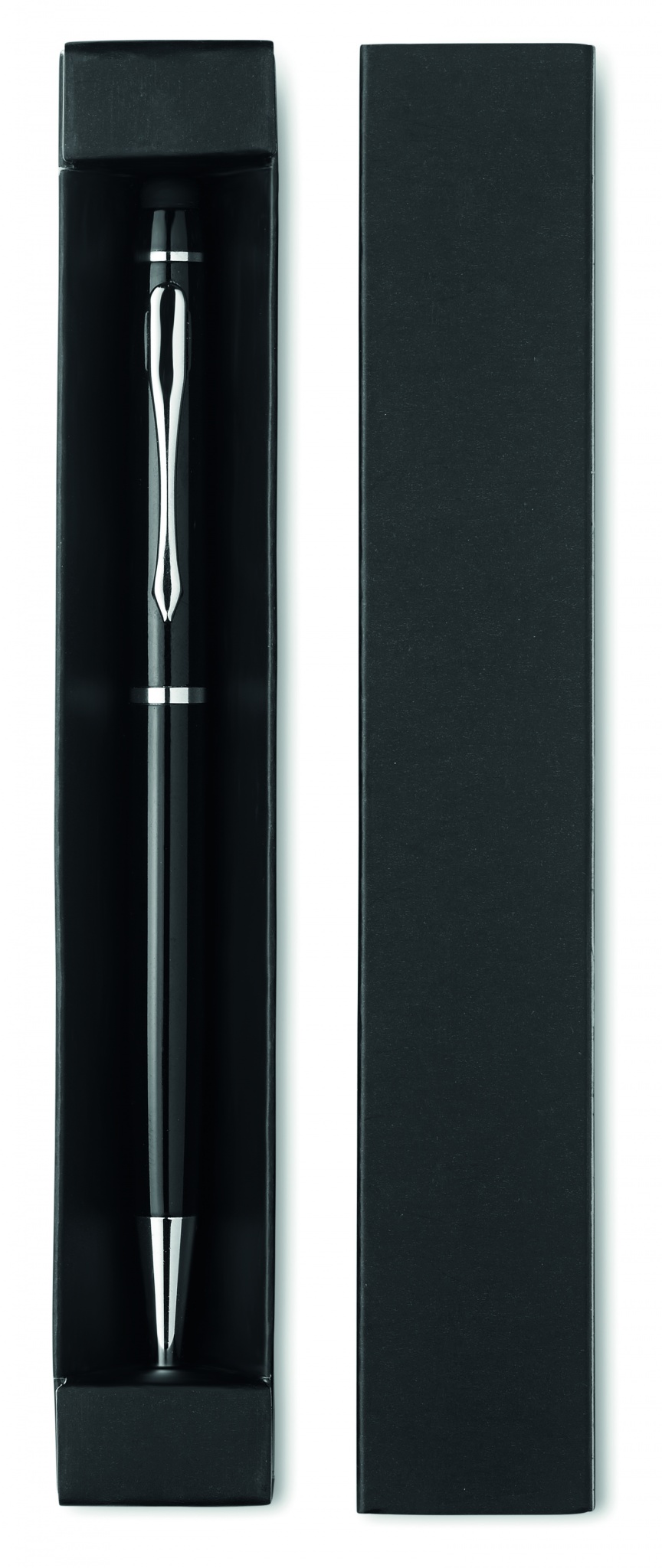 Алюминиевая шариковая ручка с поворотным механизмом и стилусом. Синие чернила. Картонная коробка.