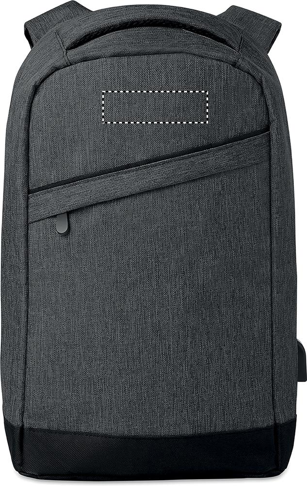 Рюкзак из полиэстера 600D двухцветный с мягким плечевым ремнем и основным внутренним отделением. Включает в себя один внутренний отсек для ноутбука с диагональю 13 дюймов и кабель для зарядки USB. Основной отсек на молнии на задней стороне для лучшей защиты.