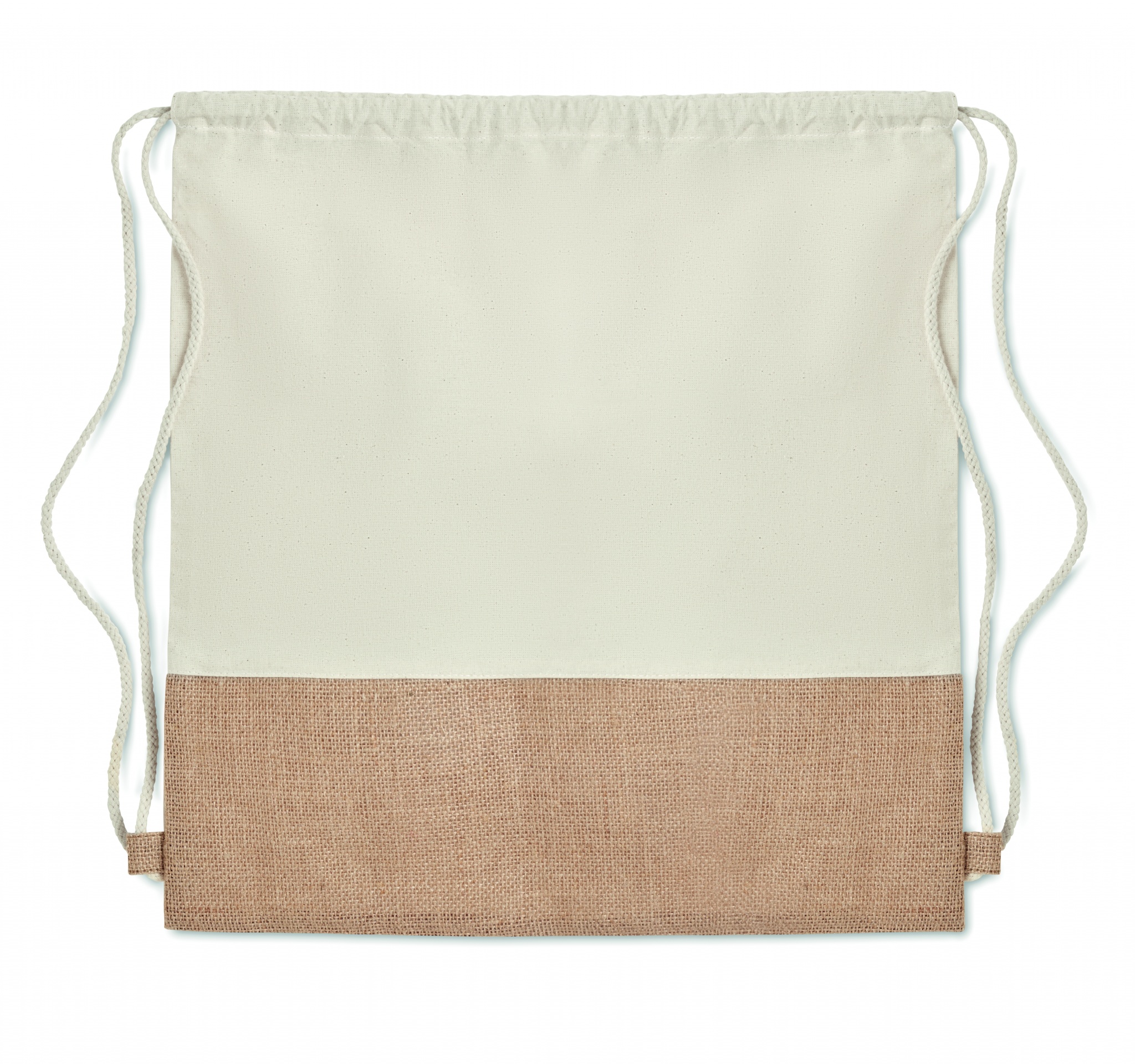 Рюкзак на шнурках из х/б с джутом. Длинные ручки. 160 г / м².