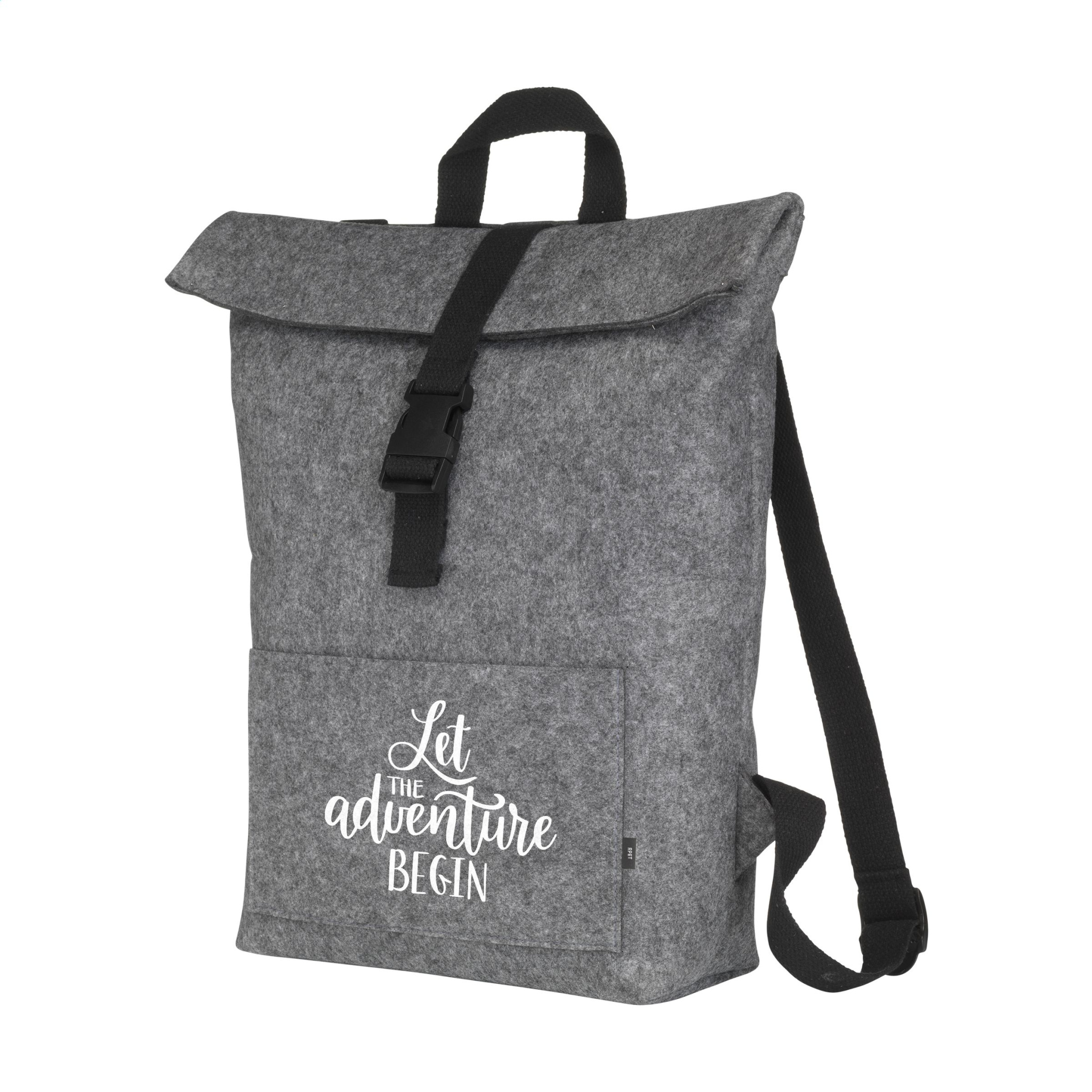 WoW! Прочный, практичный городской рюкзак с рулоном, изготовленный из прочного войлока RPET. Рюкзак имеет большое внутреннее отделение и карман спереди. С ремнем для переноски, застежкой-рулоном и удобной системой защелок сверху. Сертифицирован GRS. Общее количество переработанного материала: 80%. Емкость около 15 литров.