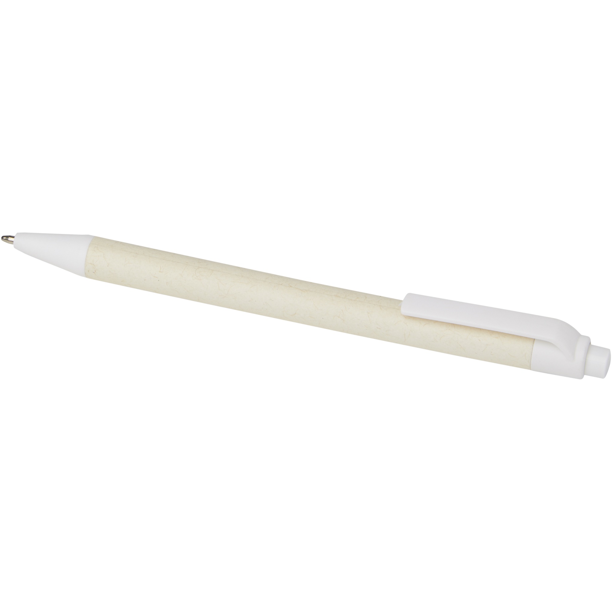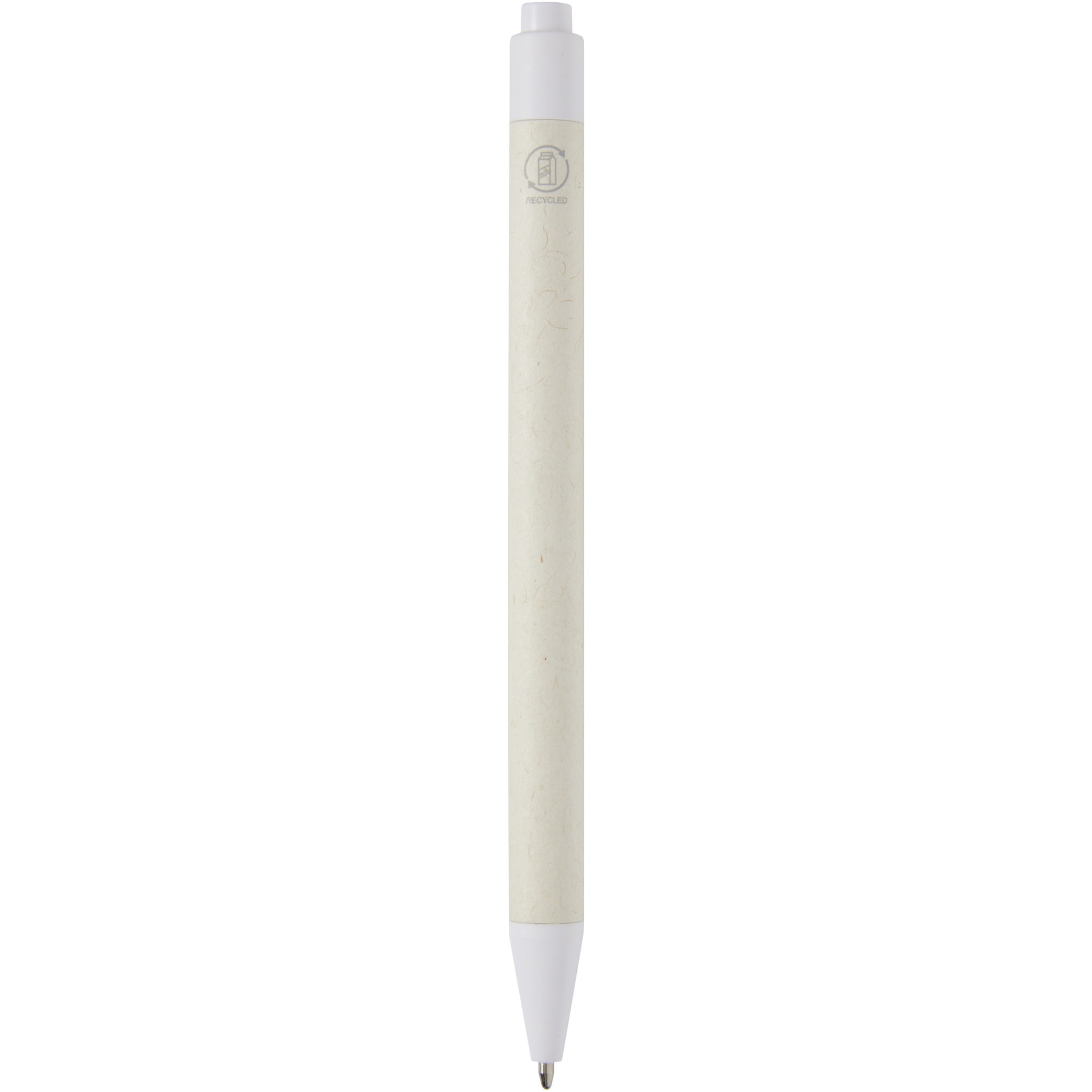 Шариковая ручка с кнопочным механизмом и корпусом из переработанных коробок из-под молока (до 70%). Кнопка, зажим и наконечник изготовлены из PLA-пластика. Картонные коробки из-под молока собираются, сортируются, перерабатываются и превращаются в бумагу, таким образом действительно превращая мусор во что-то полезное.