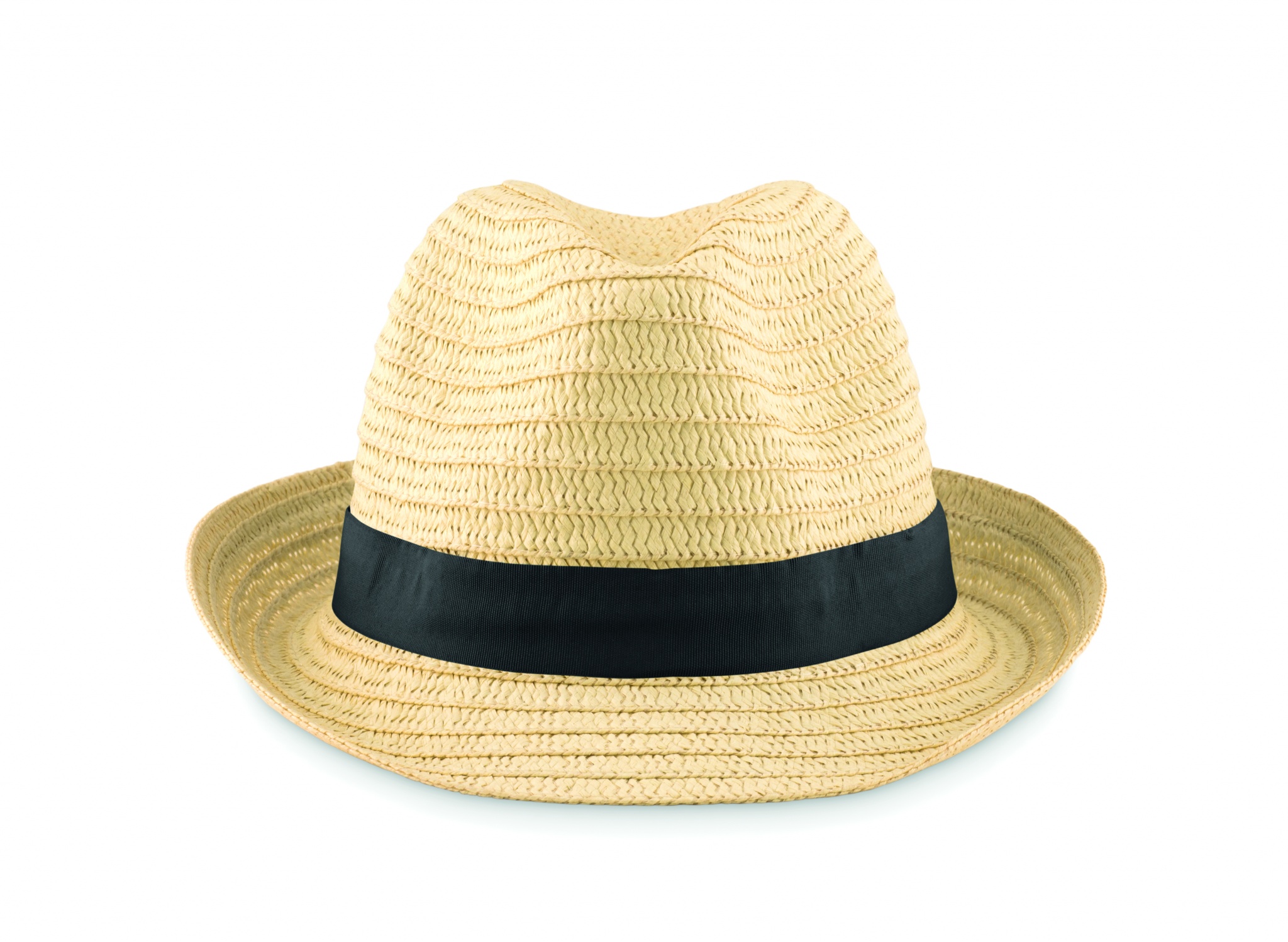 Шляпа из натуральной соломы, декорированная ремешком. Для заказов без нанесения, лента комплектуется отдельно от изделия.