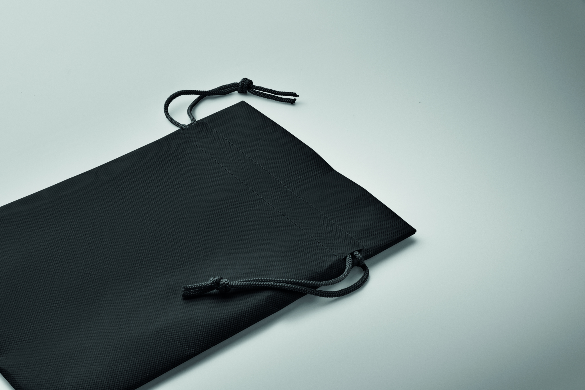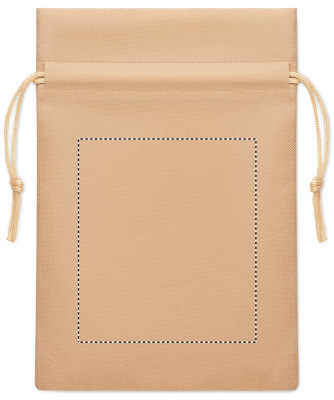 Small gift draw cord bag in RPET non-woven 80 gr/m². Size approx. 20x30 cm.