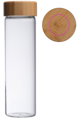Стеклянная бутылка с бамбуковой крышкой и емкостью 500 мл. На крышке будет выгравирован ваш логотип.