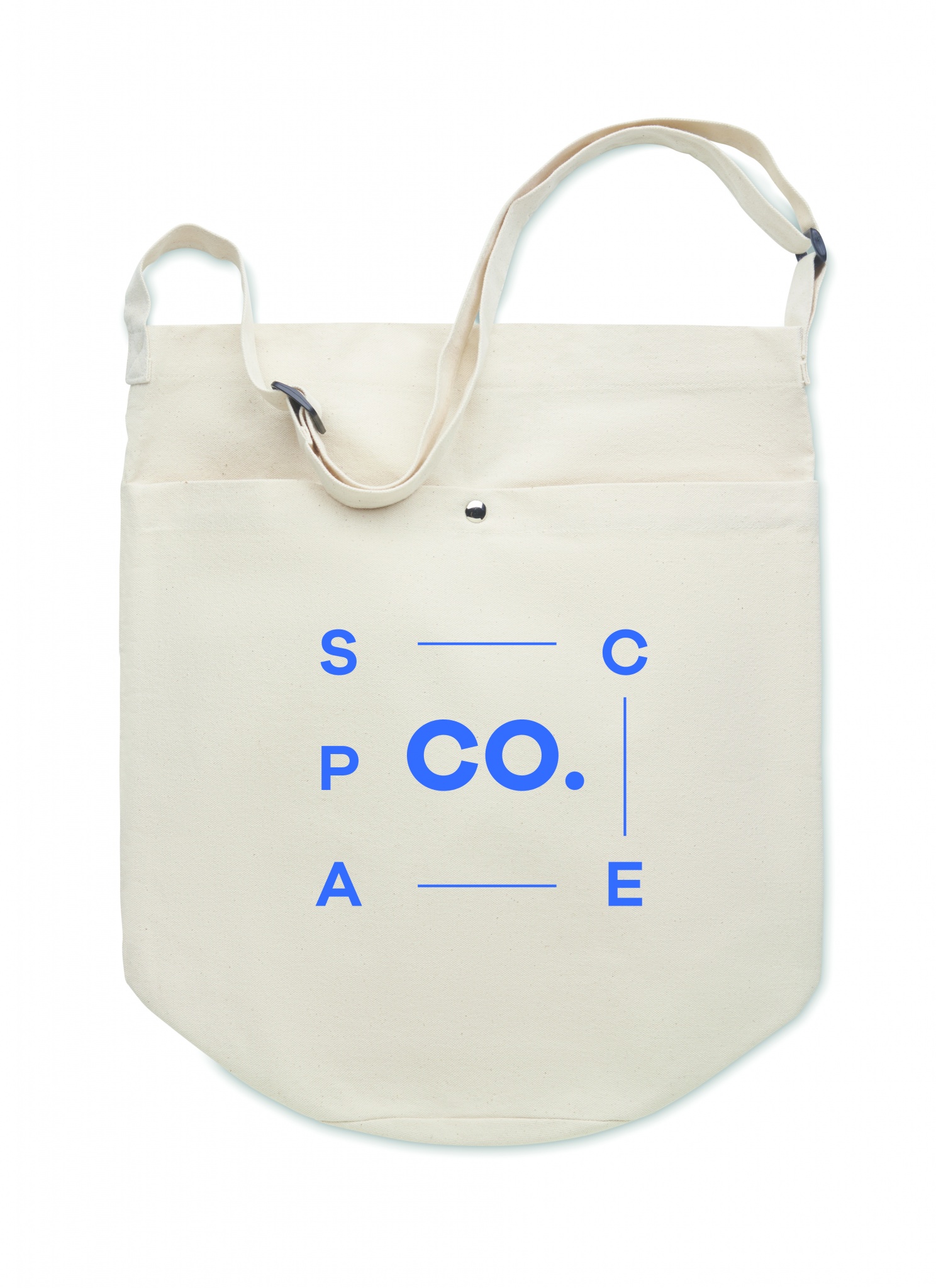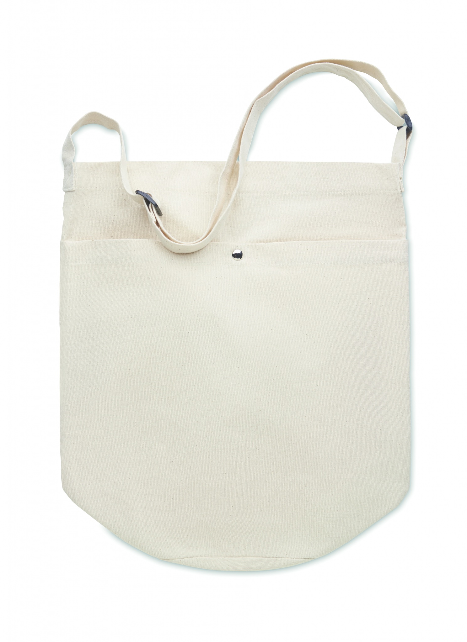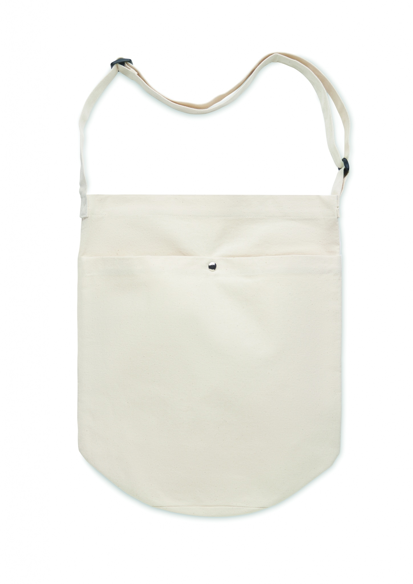 Холщовая сумка на длинном регулируемом плечевом ремне с большим передним карманом на застежке. Есть внутренний карман. 270 гр/м².