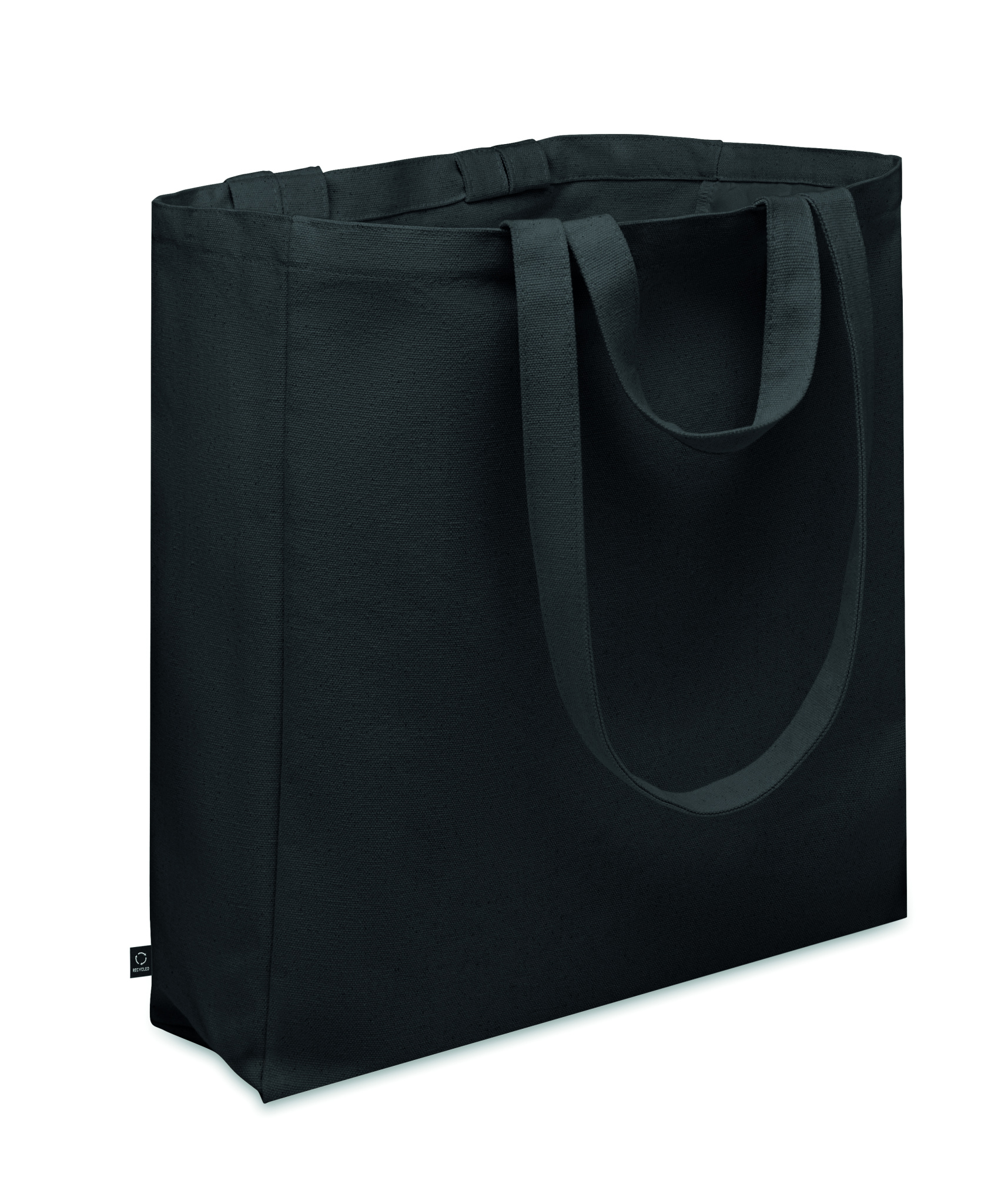Recycled polycotton shopping or beach bag (70% recycled cotton, 30% recycled polyester) with short and long handles. It has a side zippered pocket. 380 gr/m².