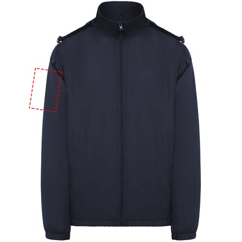 Легкая водонепроницаемая куртка. Высокий воротник и складной капюшон с регуляторами. Подкладка из микрофлиса. Молния спереди и защита для подбородка. Эластичные манжеты. Два боковых кармана на молнии. Внутренний левый нагрудный карман. Съемная этикетка. Водонепроницаемая. Ветрозащитная.