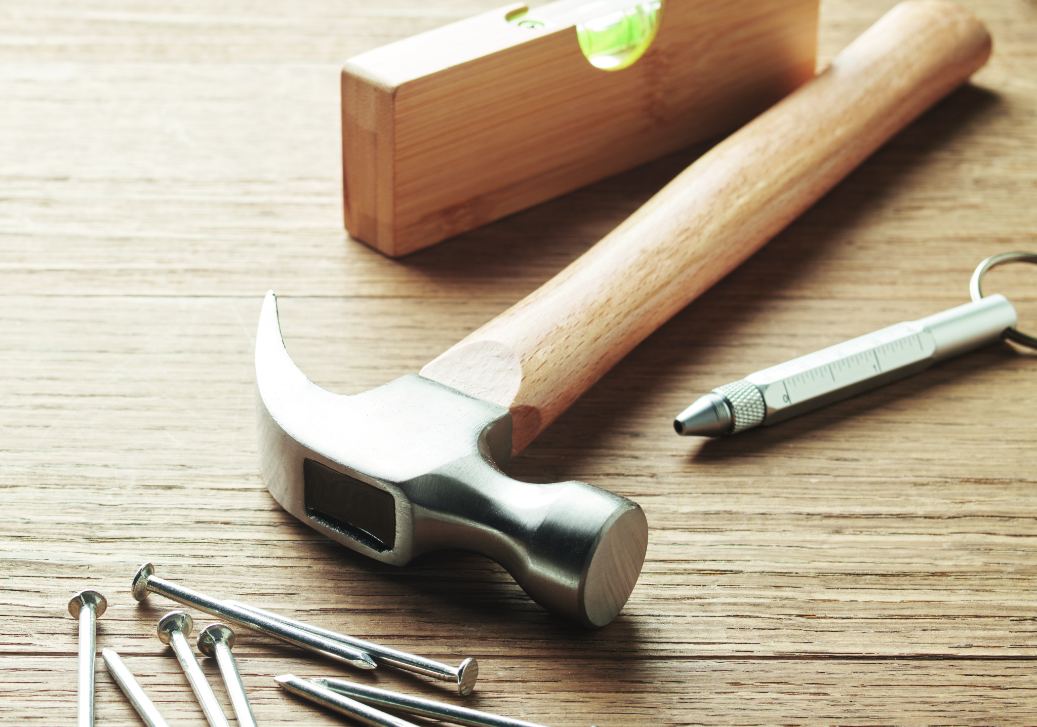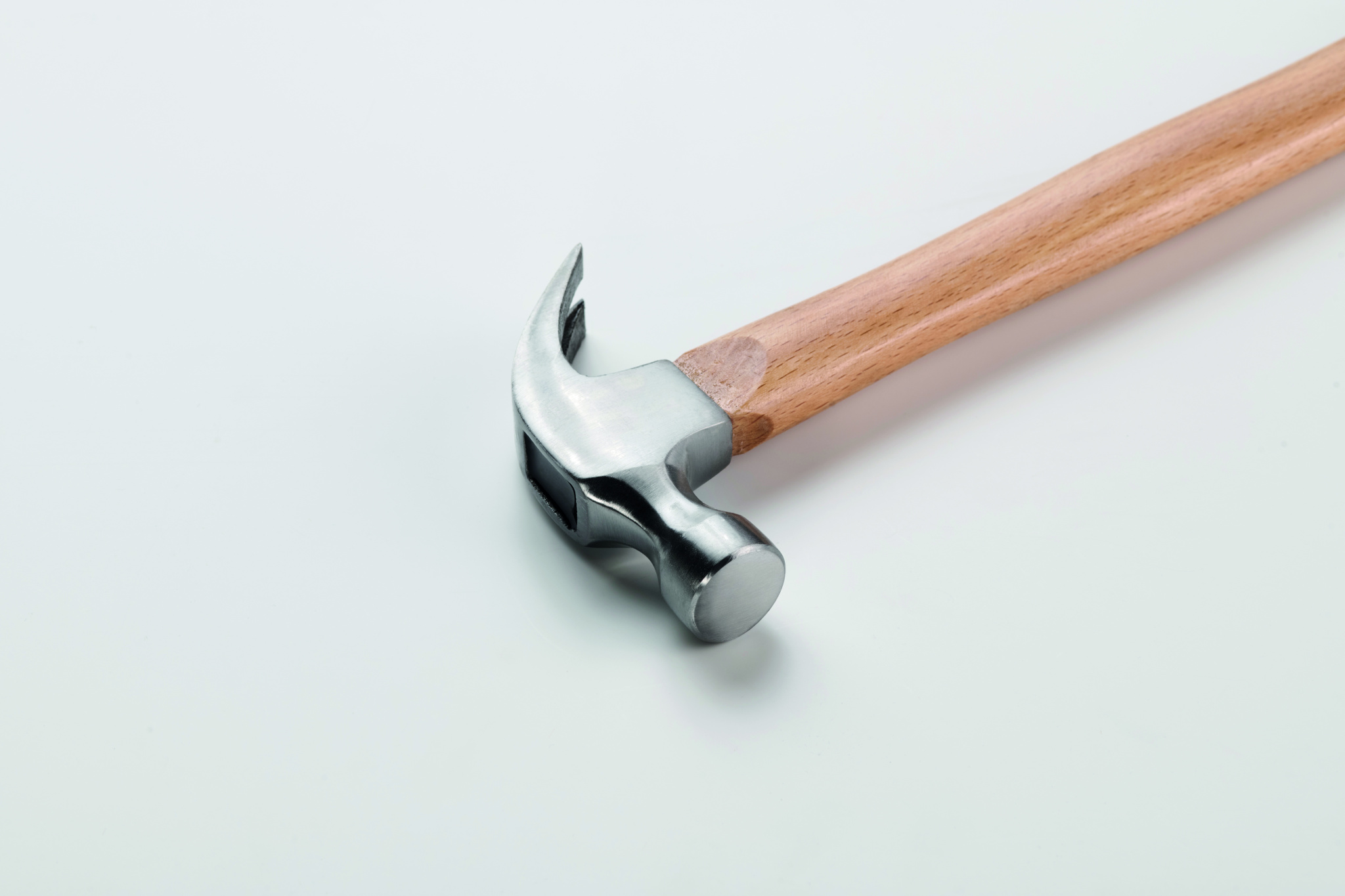 Claw hammer with steel head and beech wood shaft.