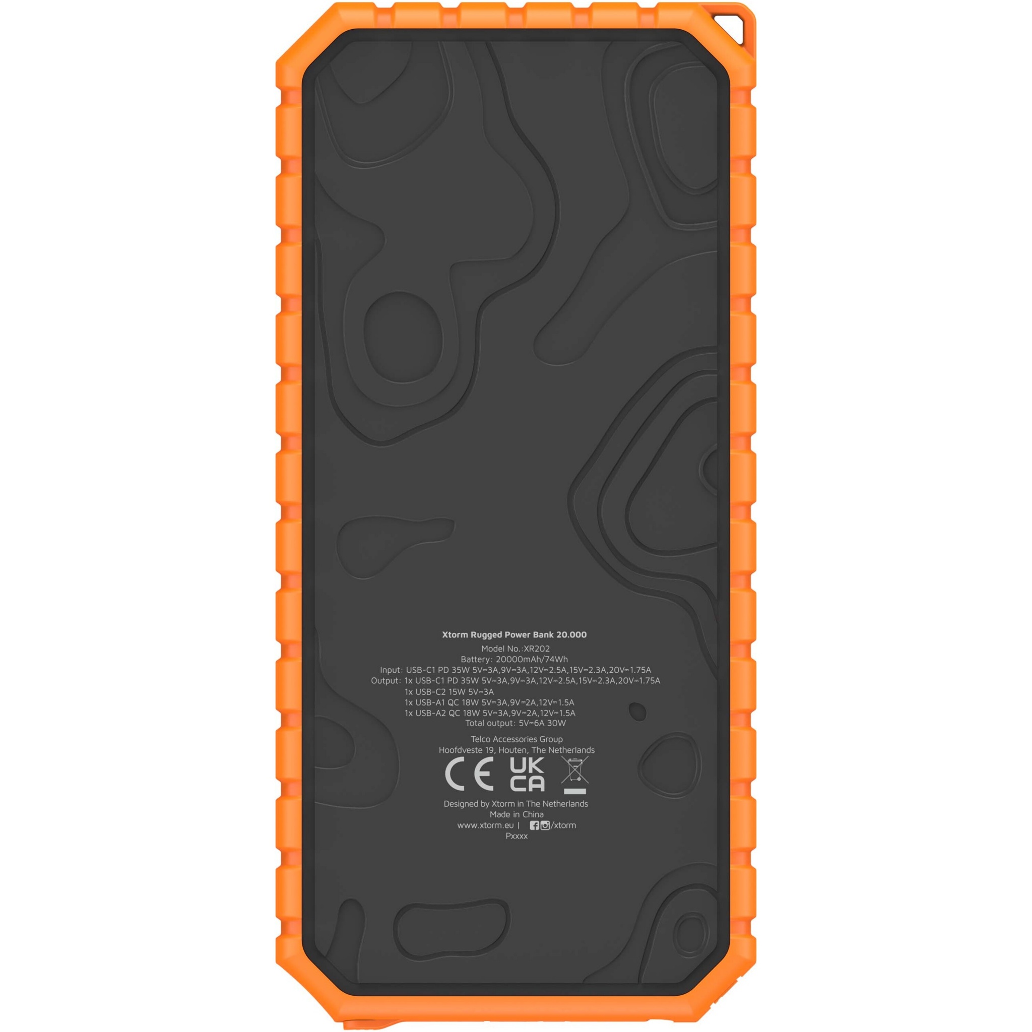 Xtorm XR202 Xtreme водонепроницаемое прочное портативное зарядное устройство QC3.0 с фонариком емкостью 20 000 мАч и мощность, Сплошной черный / Оранжевый