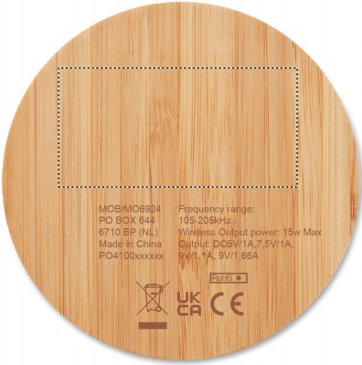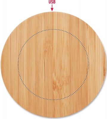 Беспроводное быстрое зарядное устройство из бамбука. Подключите устройство к компьютеру и положите на него смартфон. Во время зарядки горит синий свет. Выход: DC 9V/1.67A (15W). Совместимо со всеми устройствами с поддержкой QI, такими как последние модели Androids, iPhone® 8, X и более новые.