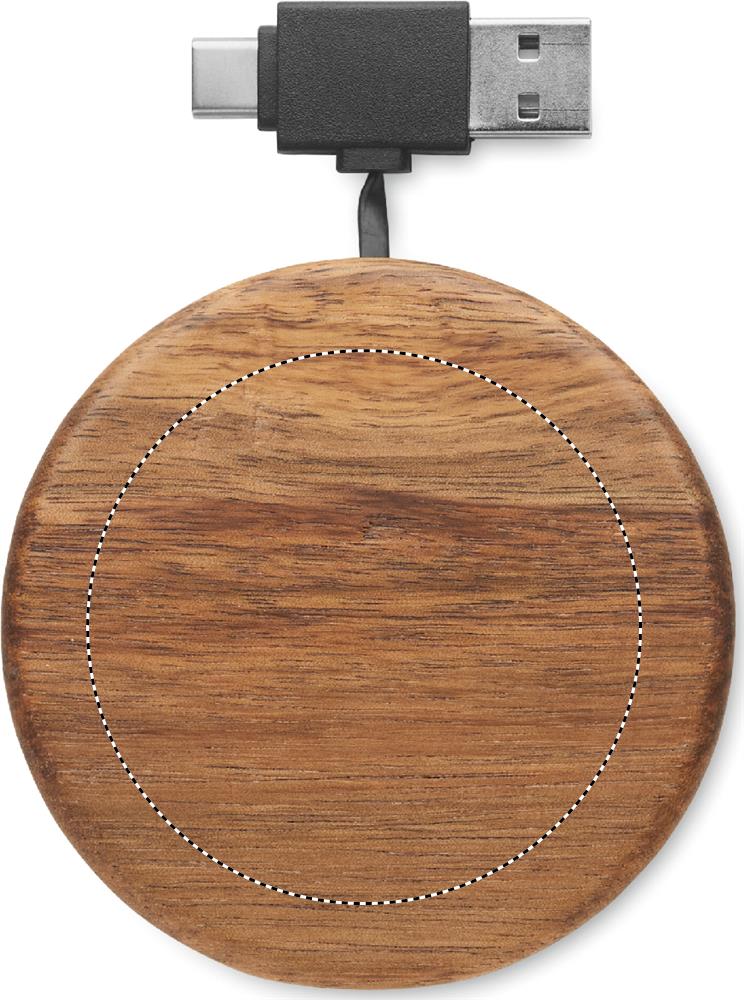Беспроводное зарядное устройство из дерева акации с выдвижным кабелем. Подключите устройство к компьютеру, положите на него смартфон и дайте ему зарядиться. Выход: DC 9V/1.67A (15W). Совместимо со всеми устройствами с поддержкой QI, такими как последние модели Androids, iPhone® 12, X и более новые.
