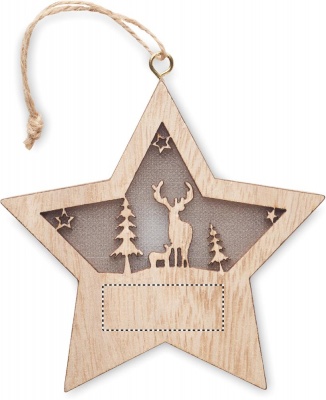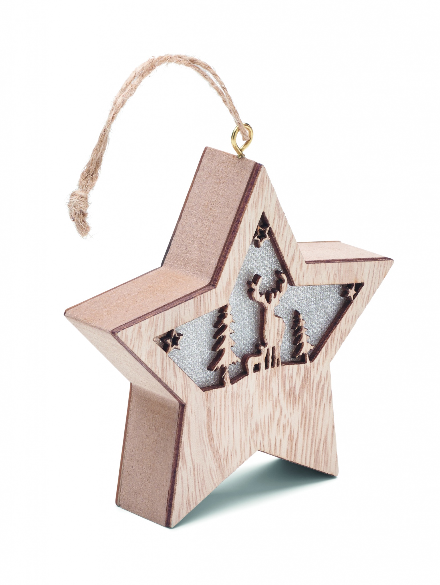 Декорированная рождественская звезда из МДФ со встроенным фонариком и шнурком для подвешивания. В комплект входят 3 батарейки LR44.