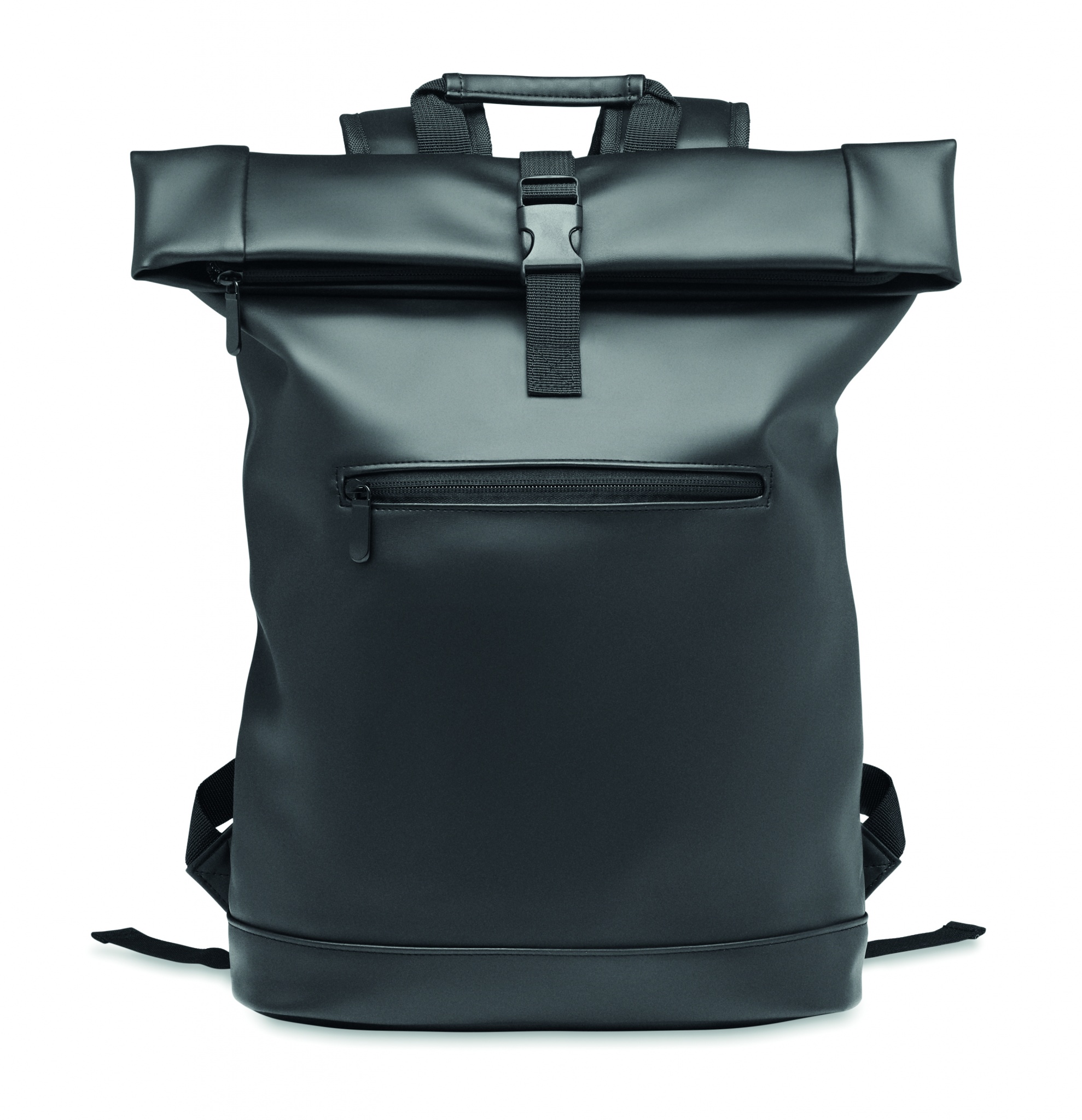 15 tums laptopryggsäck i mjuk PU med vadderad rygg och förstärkt botten. Stor ficka med dragkedja på framsidan. Fodret är av 210D RPET.