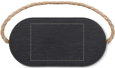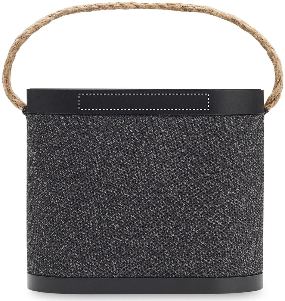 5.3 trådlösa högtalare i ABS med RPET polyestertyg och 15W trådlös laddare i bambu, med handtag i jute. 1 Uppladdningsbart Li-Ion 1200 mAh batteri. Uteffekt: 5W, 4 Ohm och 5V. Speltid ca 4 timmar.