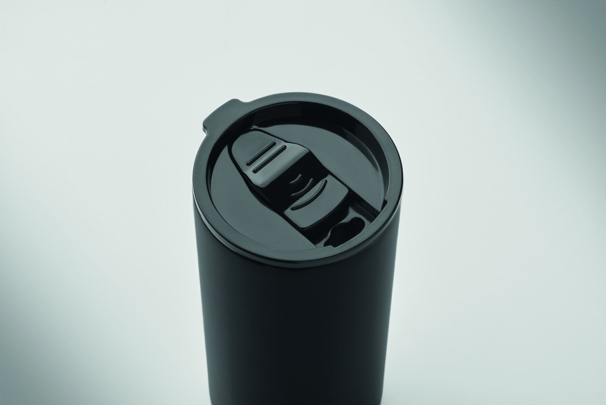 2 i 1-flaska i Tritan och dubbelväggig muggdel i återvunnet rostfritt stål (90 % återvunnet och 10 % rostfritt stål). 2 lock i PP-material. Volym totalt 610 ml, endast dricksglas 350 ml.