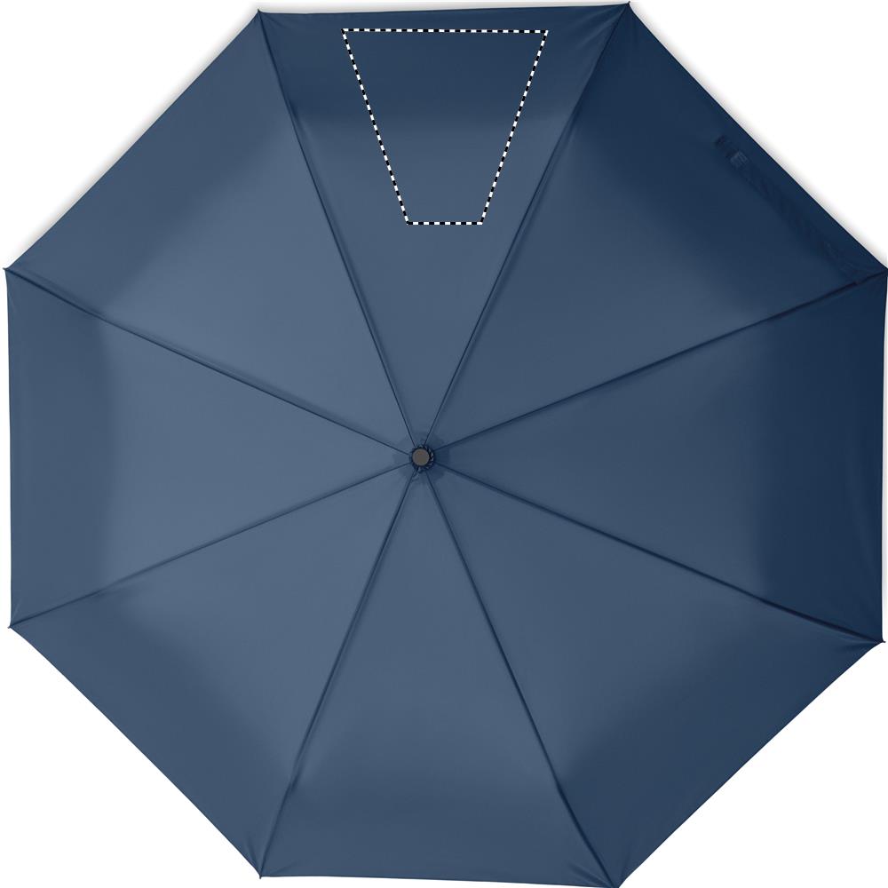 27 tums stormsäkert kompaktparaply med automatisk öppning/stängning. 190T pongee-tyg, svartpläterat 3-delat stålskaft. Glasfiberribbor. Svart PP-handtag med knapp. Med matchande fodral.