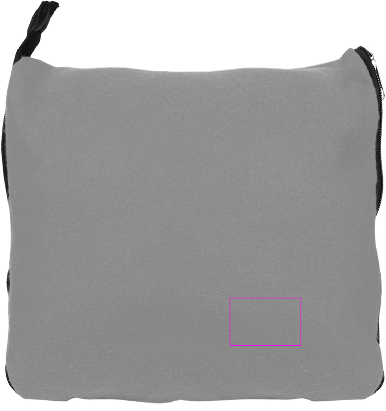 Fleecefilt (vikt 170 g/m², storlek: 180 x 120 cm) med dragkedja, som genom att vikas sedan förvandlas till en kudde. Vi broderar din logotyp på filten.