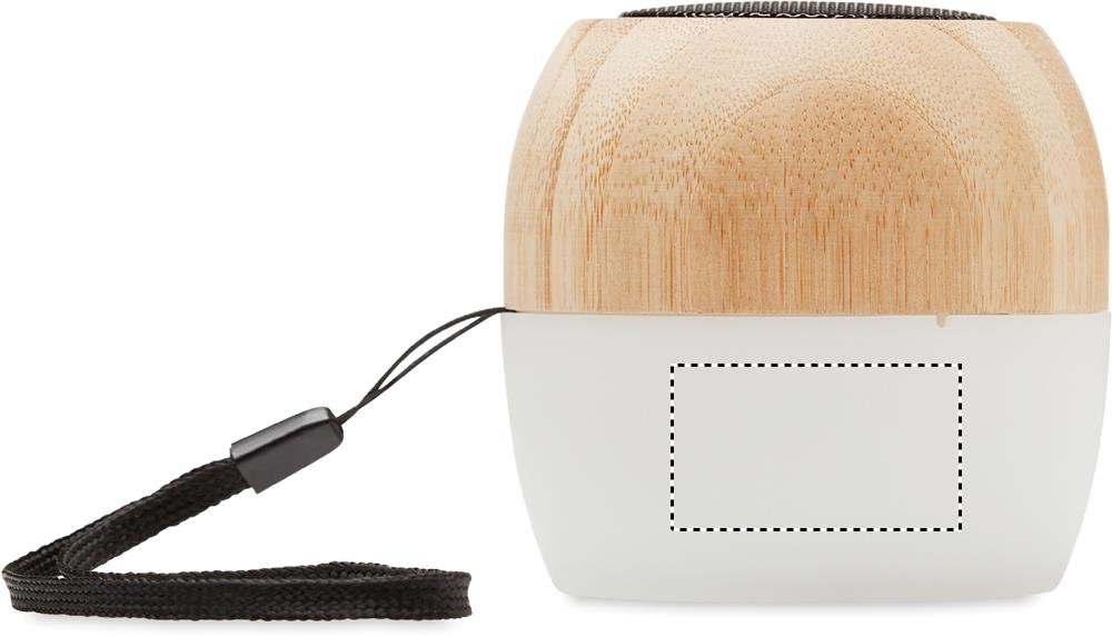 5.0 trådlös högtalare i bambu och PP med 4-färgat stämningsljus och bärrem. Inbyggt uppladdningsbart Li-POL 300 mAh-batteri. Uteffekt: 3W, 4 Ohm. Speltid ca. 2 timmar.
