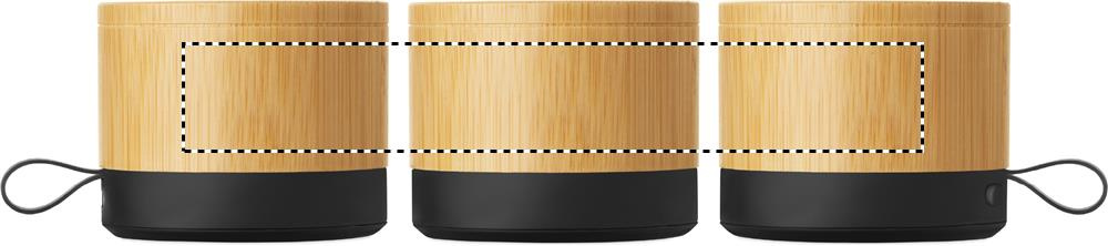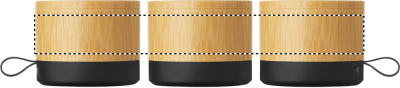 Trådlös 5.1-högtalare med hölje i bambu och bas i ABS. Har 3W monoljud. Inkluderar uppladdningsbart och utbytbart 500mAh batteri. Kompakt och modern design.