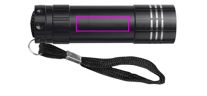COB aluminium ficklampa med sex COB:s. Vi applicerar din logotyp med hjälp av en lasergravering på mittstycket. Exklusive tre AAA-batterier (beställ dem omedelbart, se sista sidan eller artikel 999400).