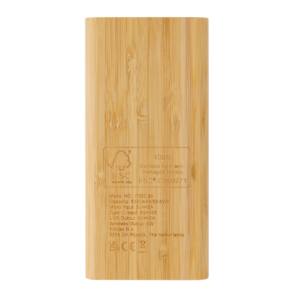 Logotrade reklamprodukter bild: 8.000 mAh, 5W trådlös powerbank i bambu