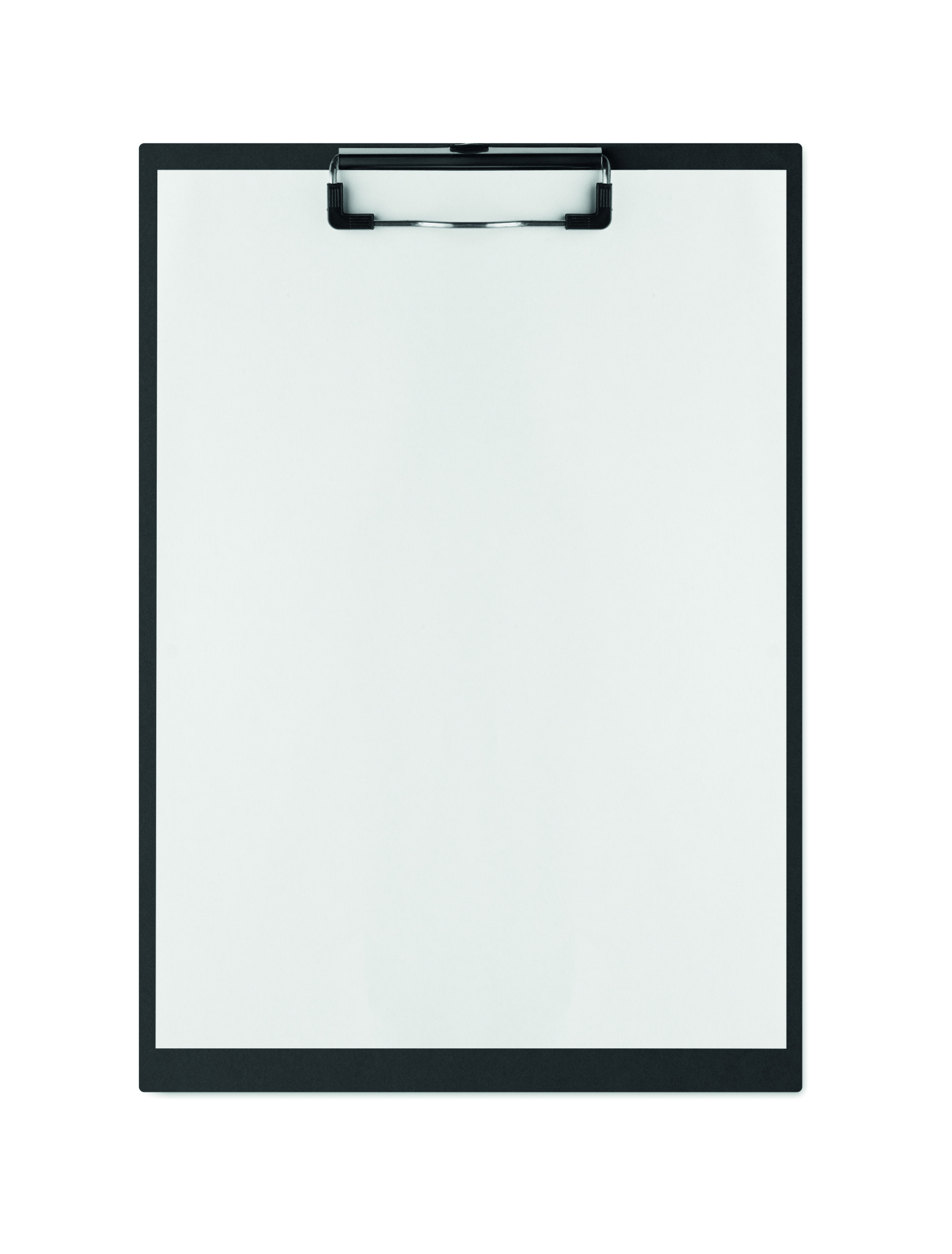 A4-hållare av kartong med pappersomslag och silverfärgad järnklämma. Lättviktsdesign på 125 g, perfekt för vardagligt bruk på kontoret eller i skolan.