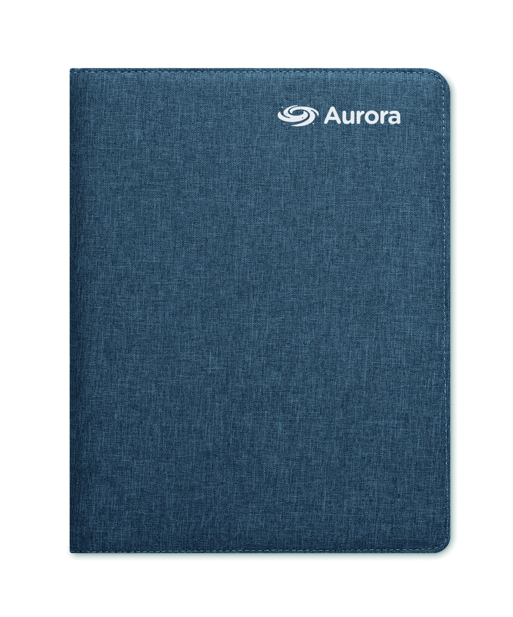 Konferensmapp i A4-storlek i tvåfärgad 300D RPET. Innehåller innerfack, pennhållare och block med 20st linjerat ark.