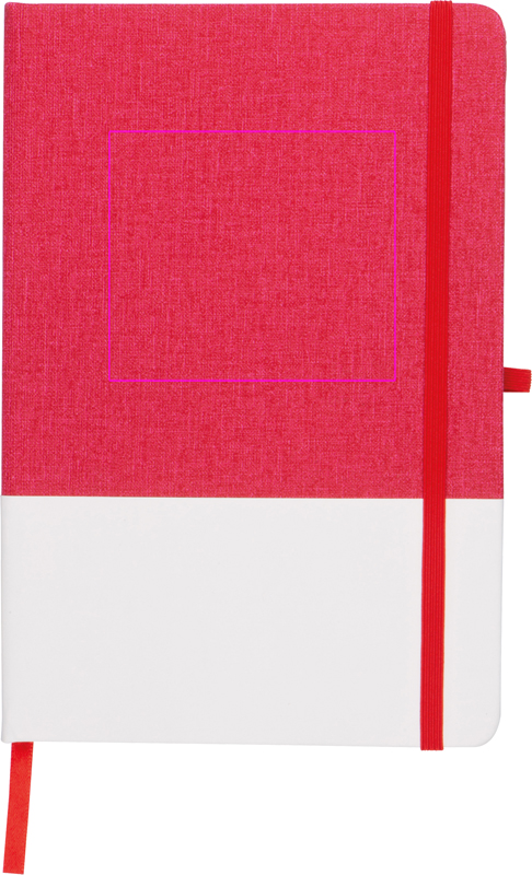 A5-anteckningsbok med 160 kvadratiska sidor, PU-tygomslag, bokmärke, kulpennögla och elastiskt gummiband. Vi trycker din logotyp på den vita ytan.