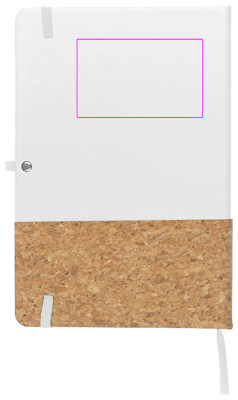 A5-anteckningsbok med 160 raderade sidor och PU-korkomslag, bokmärke, kulpennögla och elastiskt stängningsband. Vi trycker din logotyp på framsidan.
