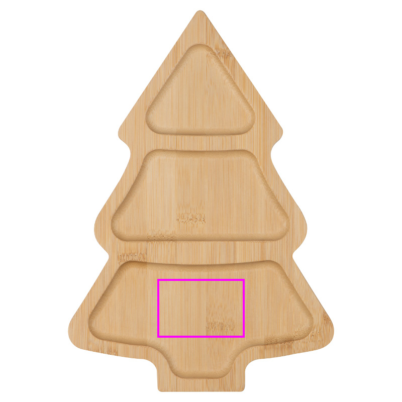 Snackbricka i bambu i form av en julgran med tre fack. En mycket snygg, dekorativ accessoar i advent och jul. Din logotyp kommer att graveras i ett av facken.
