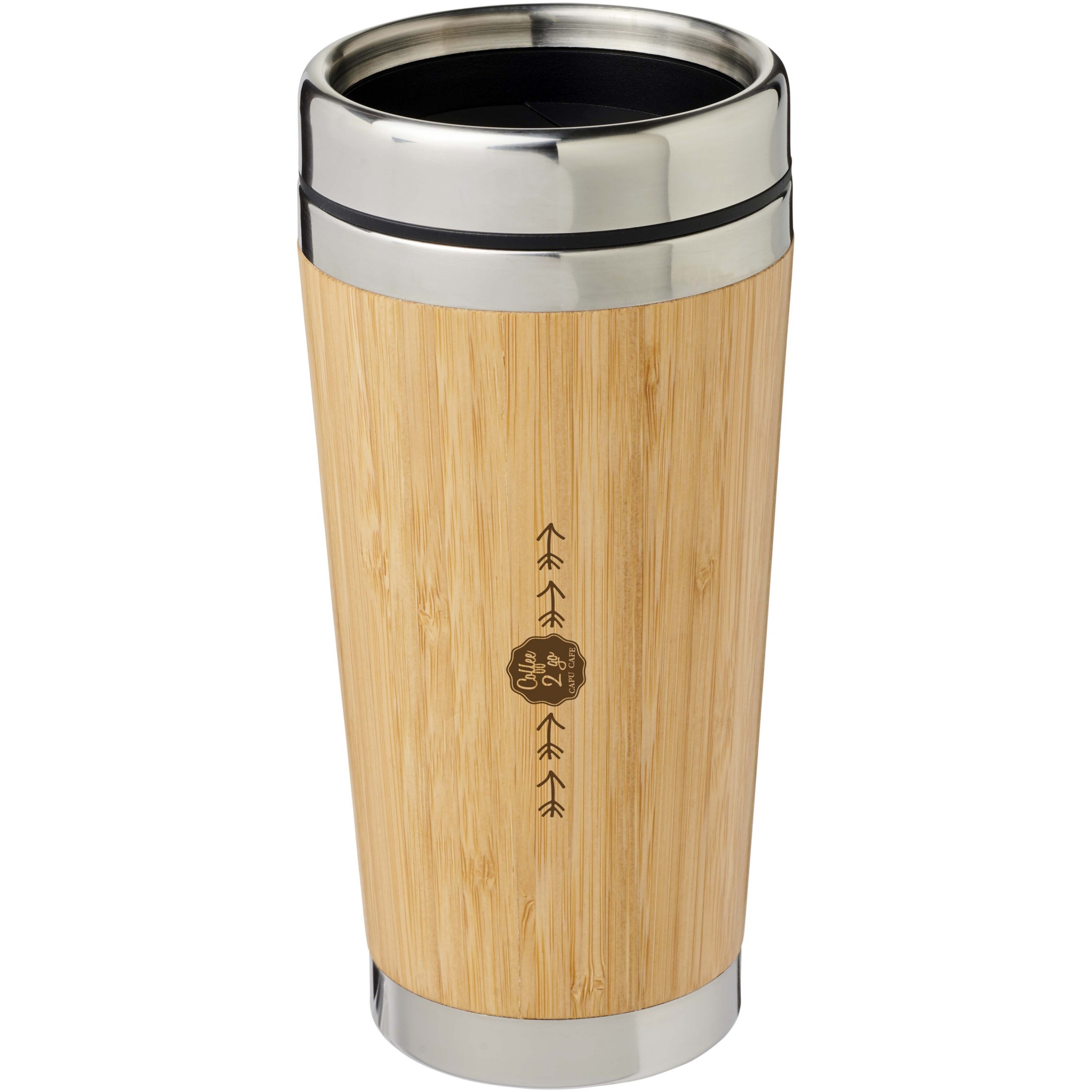Bambus 450 ml behållare med bambu yttre. Dubbelväggig isolerad termos tillverkad av rostfrittstål och med en utsida av naturligt bambu. Det kan hålla dryckerna varma i upp till 2 timmar och kalla i upp till 4 timmar. Att dricka från det är enkelt med press-on locket med skjutlock för att stänga. Rostfritt stål, bambu.