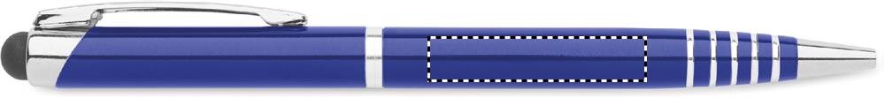 Kulspetspenna i återvunnen aluminium med vridmekanism och stylus. Blått bläck.