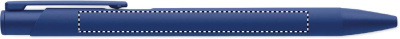 Tryckpenna av återvunnen aluminium med järnklips och färgad gummiklädd kropp. Blått bläck.