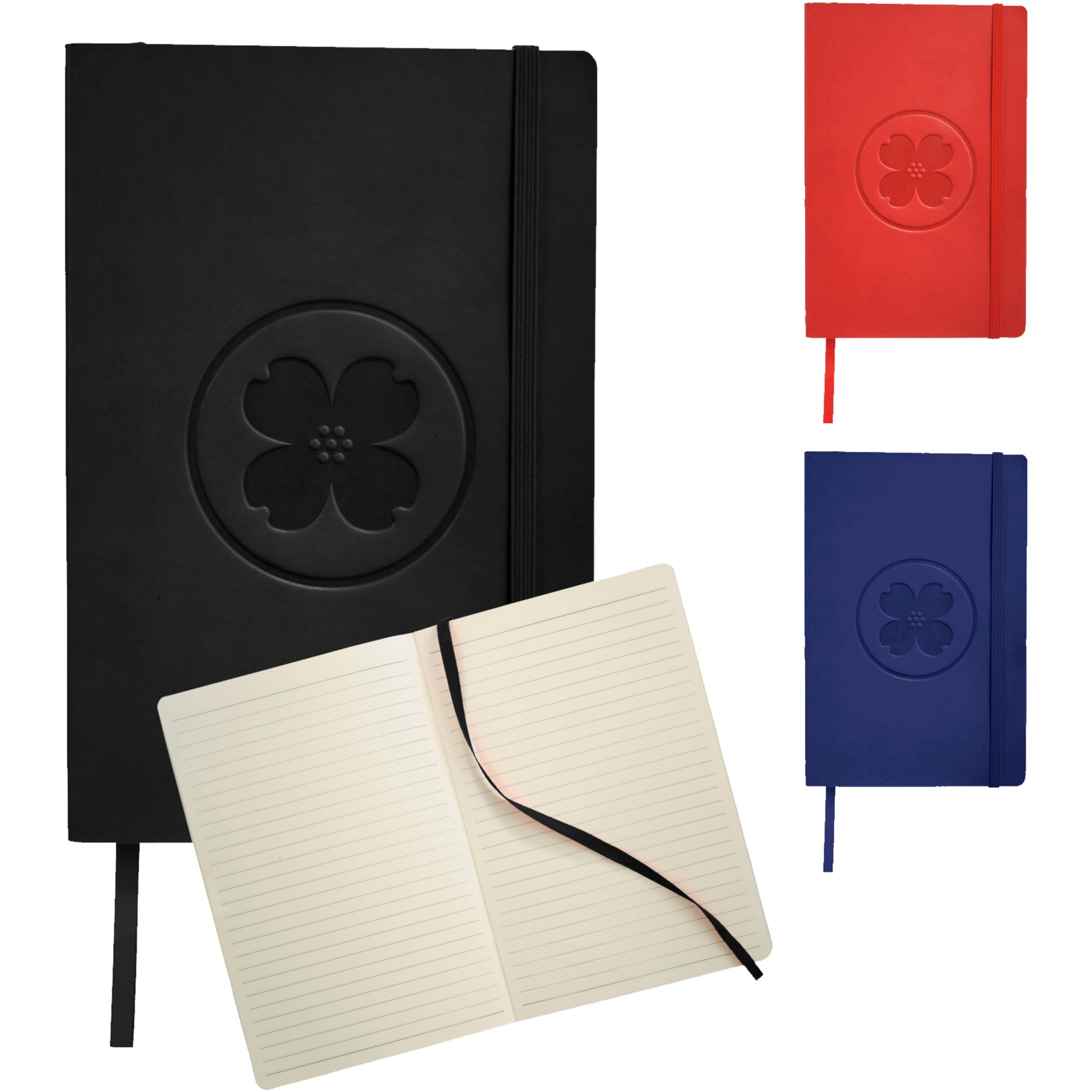 A5 anteckningsbok med soft touch-omslag, resårband, avdelare, dokumentficka invändigt på baksidan och 80 linjerade blad (80 g/m²). Journalbooks presentfodral.