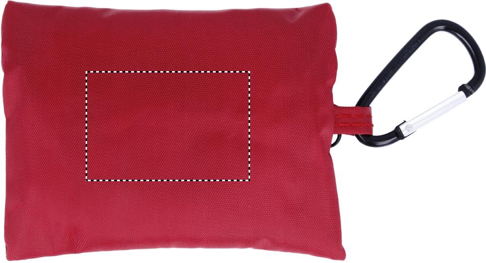 Förstaförband kit innehållande sax, en våtservett, en gasbinda, 3 bomullpads och 5 plåster. Packat i polyester påse med karbinhake.