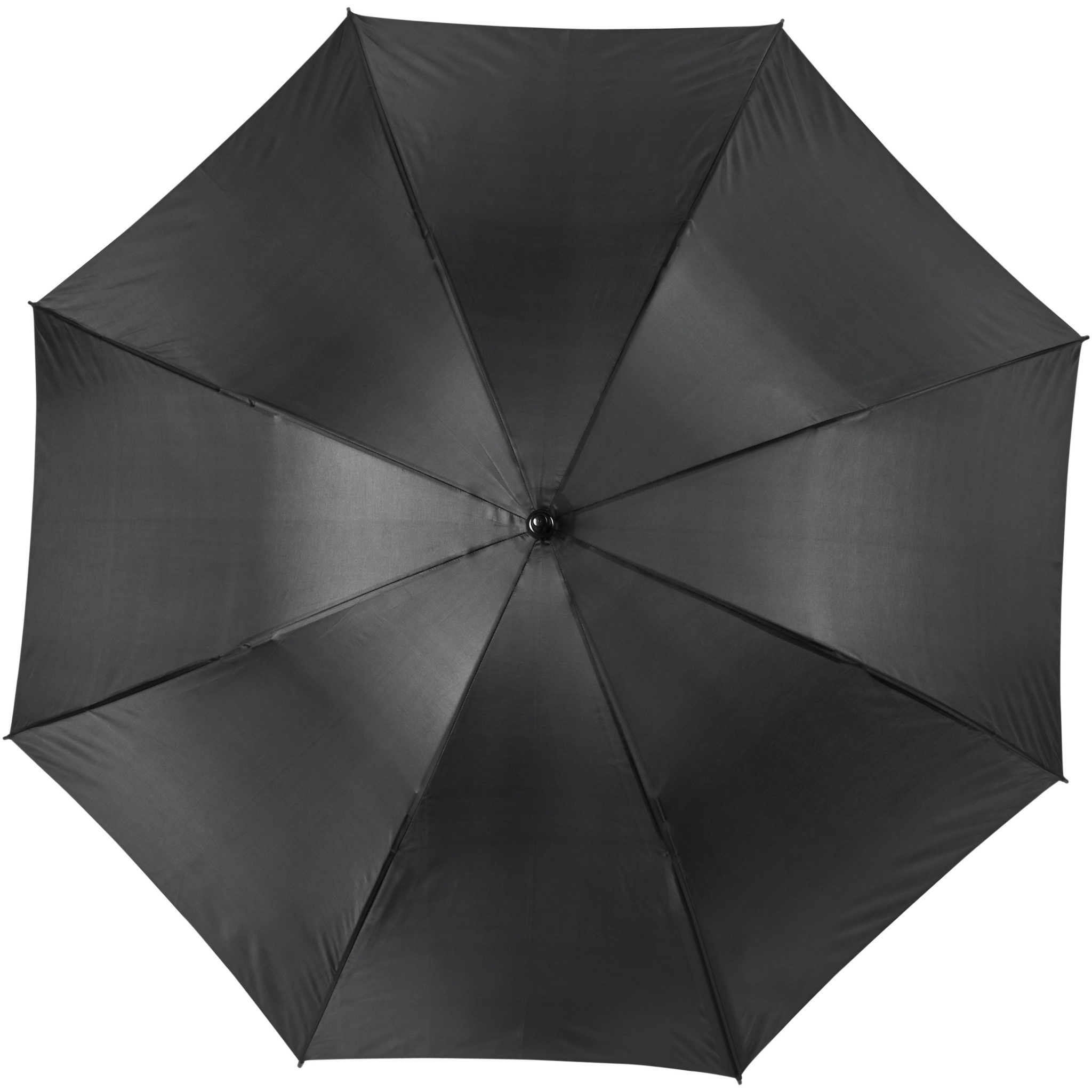 Paraply med robust metallskaft och en patenterad högkvalitativ glasfiberram som ger maximal flexibilitet när det blåser. Böjda EVA handtag, plasttippar och topp. Finns i ett brett utbud av moderna färger och har ett stort dekorationsområde på var och en av panelerna.
