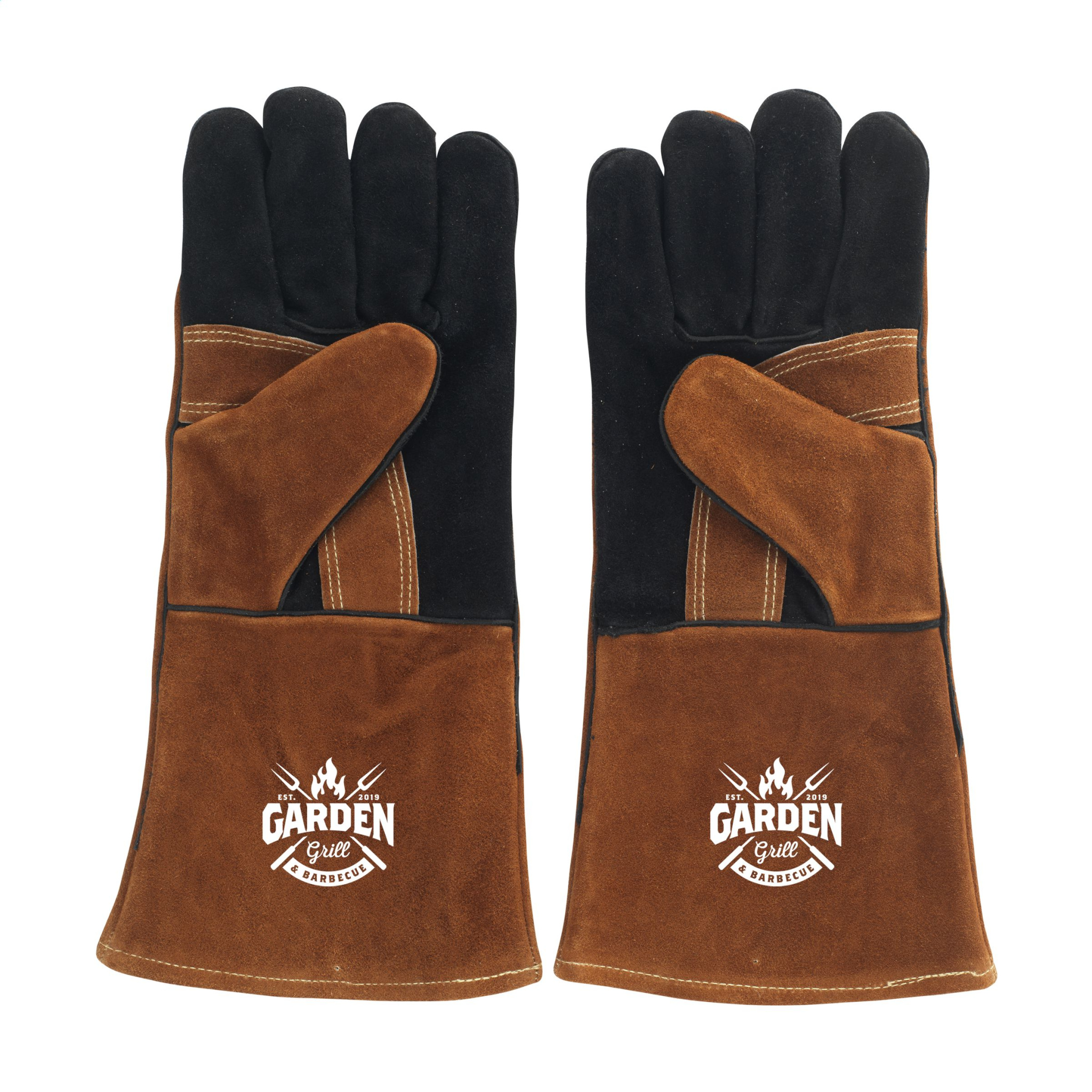 Set med två BBQ-handskar från märket Gusta. Dessa handskar är gjorda av vildlädermaterial och har en vacker mockalook. De är designade för att skydda dina händer från korta perioder av värme när du grillar. Handskarna behöver kylas ned regelbundet efter användning.