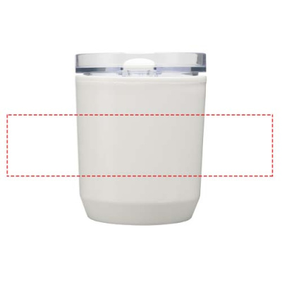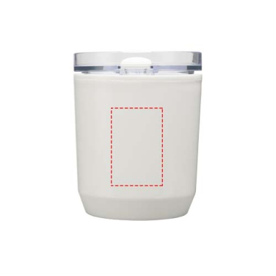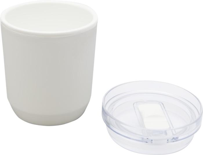 Termos med enkel design som passar de flesta kaffemaskiner och mugghållare i bilar. Dubbelväggig konstruktion med utsida av återvunnen PP-plast och insida av PP-plast. Det skjutbara locket är tillverkat av AS- och PP-plast. Volymkapacitet: 180 ml.