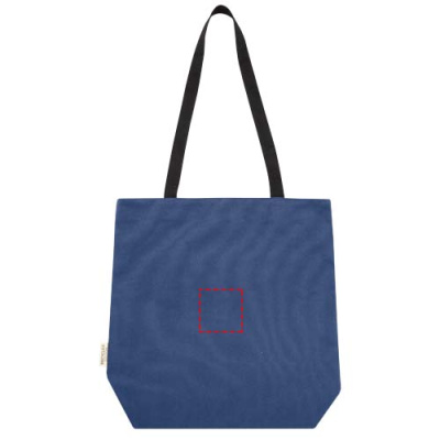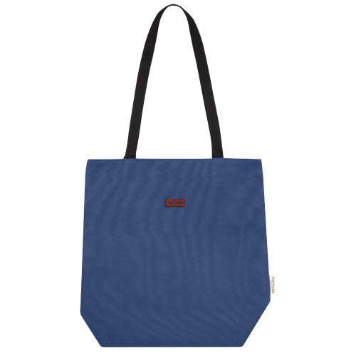 Tygväska tillverkad av GRS-certifierad återvunnen canvas och GRS-certifierad RPET-foder. Denna mångsidiga tygväska har ett vadderat 15-tums laptopfack och två sleevefickor inuti för en telefon, plånbok eller tillbehör, en enkel knappstängning till öppningen och bekväma bomullsbandhandtag. Den dekorativa metallplattan kan få en logotyp att lysa med sin subtila och matta finish.