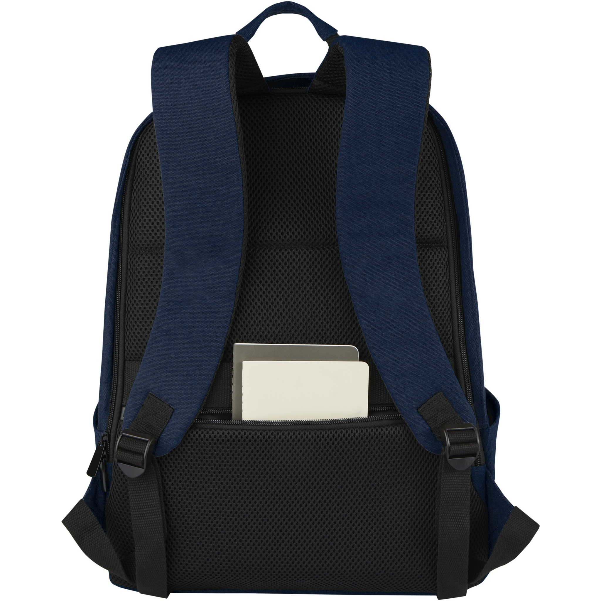 Den stöldsäkra ryggsäcken Joey är gjord av mycket hållbara material, GRS-återvunnen canvas och GRS-RPET-foder, och har ett fodral för surfplatta och ett 15,6 tums vadderat laptopfack. Ryggsäcken har också en nätficka och fickor på insidan för att hålla innehållet välorganiserat, två sidfickor för vattenflaskor, en blixtlåsförsedd framficka och en dold ficka på baksidan för enkel och säker åtkomst när du är på språng. Dekorativ metallplatta i matt finish med plats för branding.