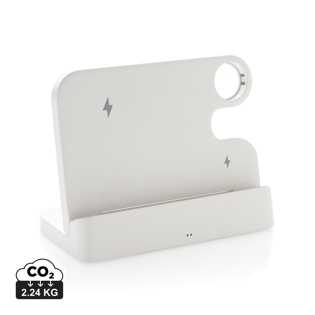 Logotrade profilprodukter bild: Joltz dubbel 15W-laddare i RCS rplast, med plats för iWatch