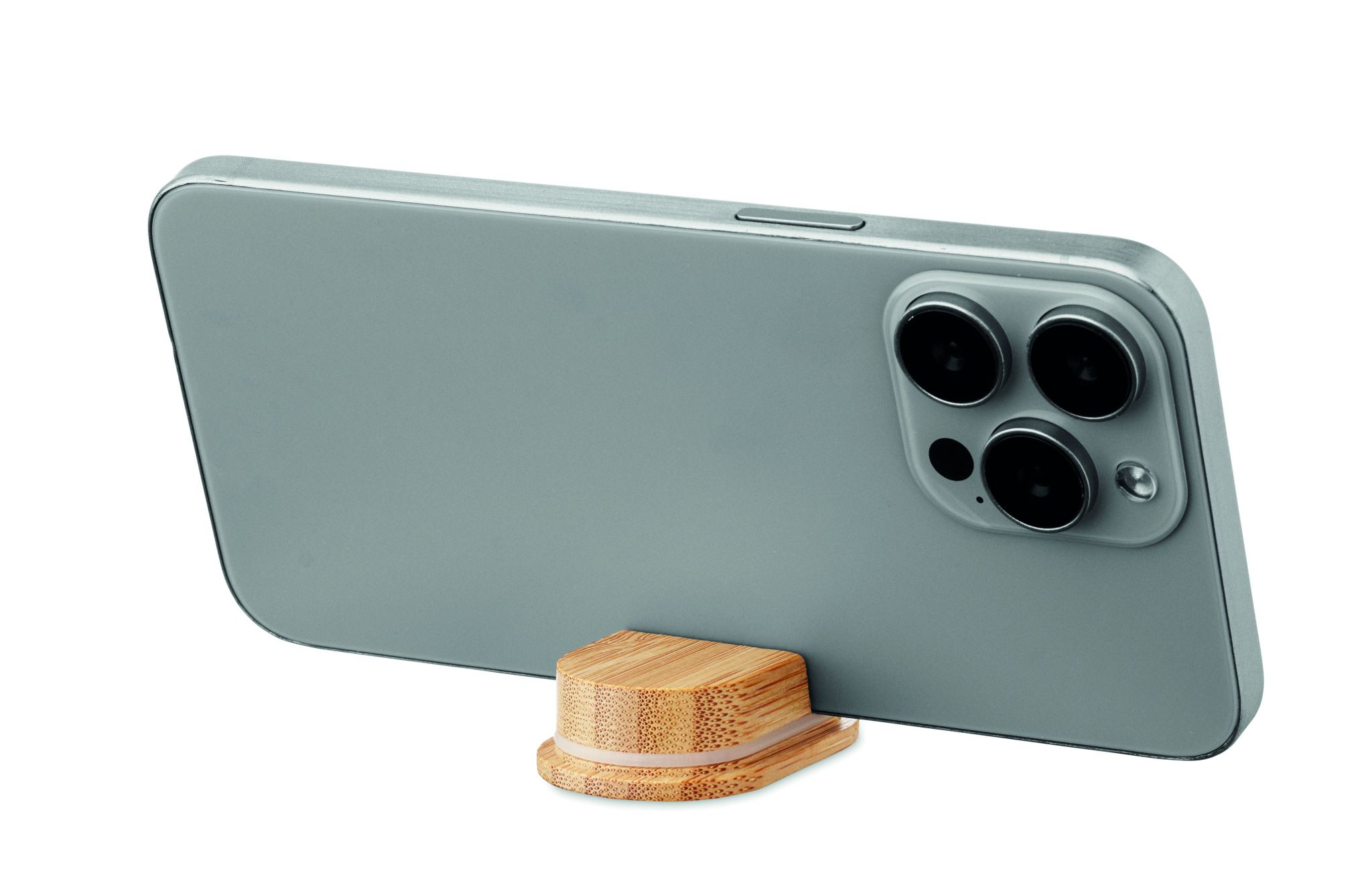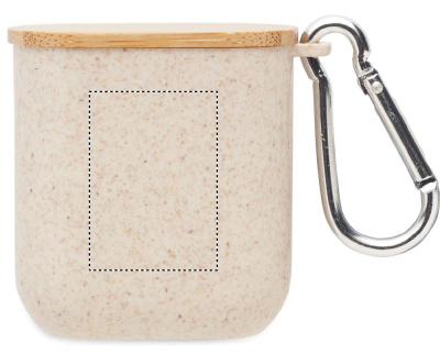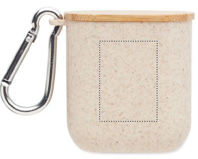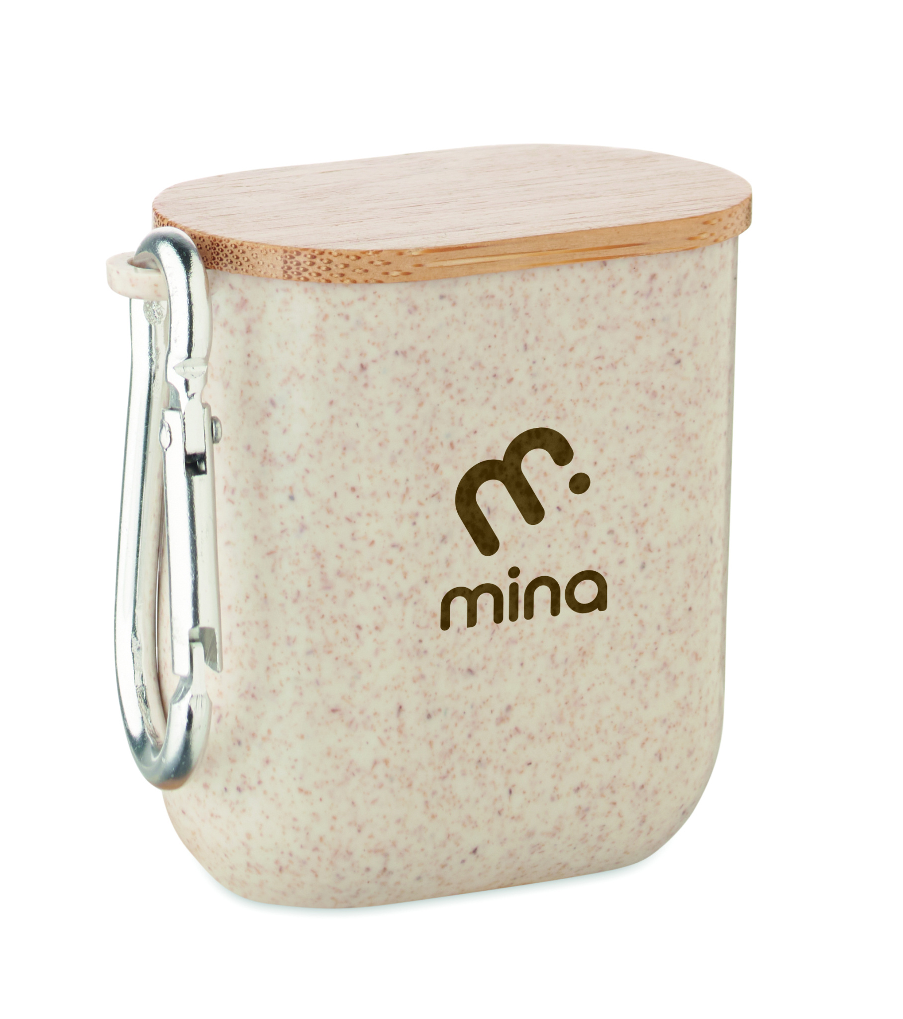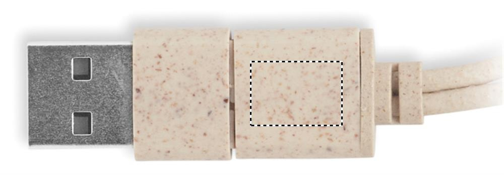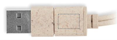 Kabelsats i fodral av vetehalm/ABS med topp och karbinhake av bambu. Locket fungerar som telefonstativ (i horisontellt läge). Kabelingång 2in1 USB-C/A, utgång Typ-C och 2 i 1 stift.