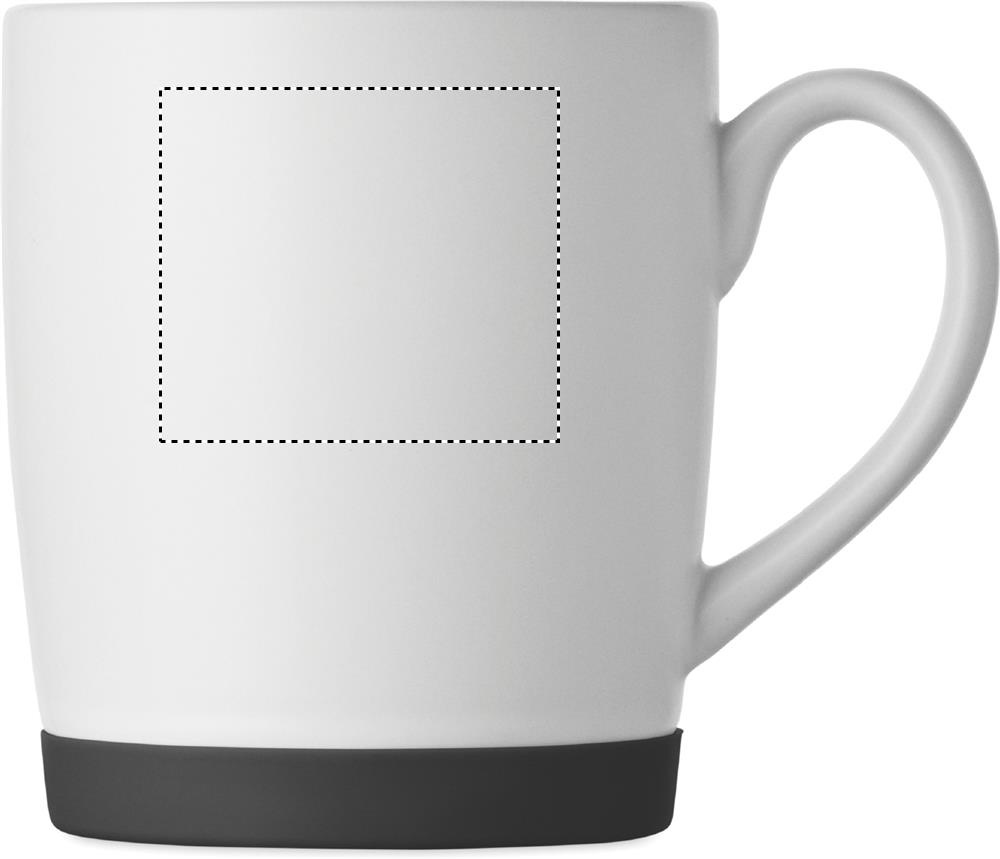 Keramisk mugg med vit matt yta och silikonbotten för stabilitet. Volym 300 ml. Individuell förpackning i vit kartong.